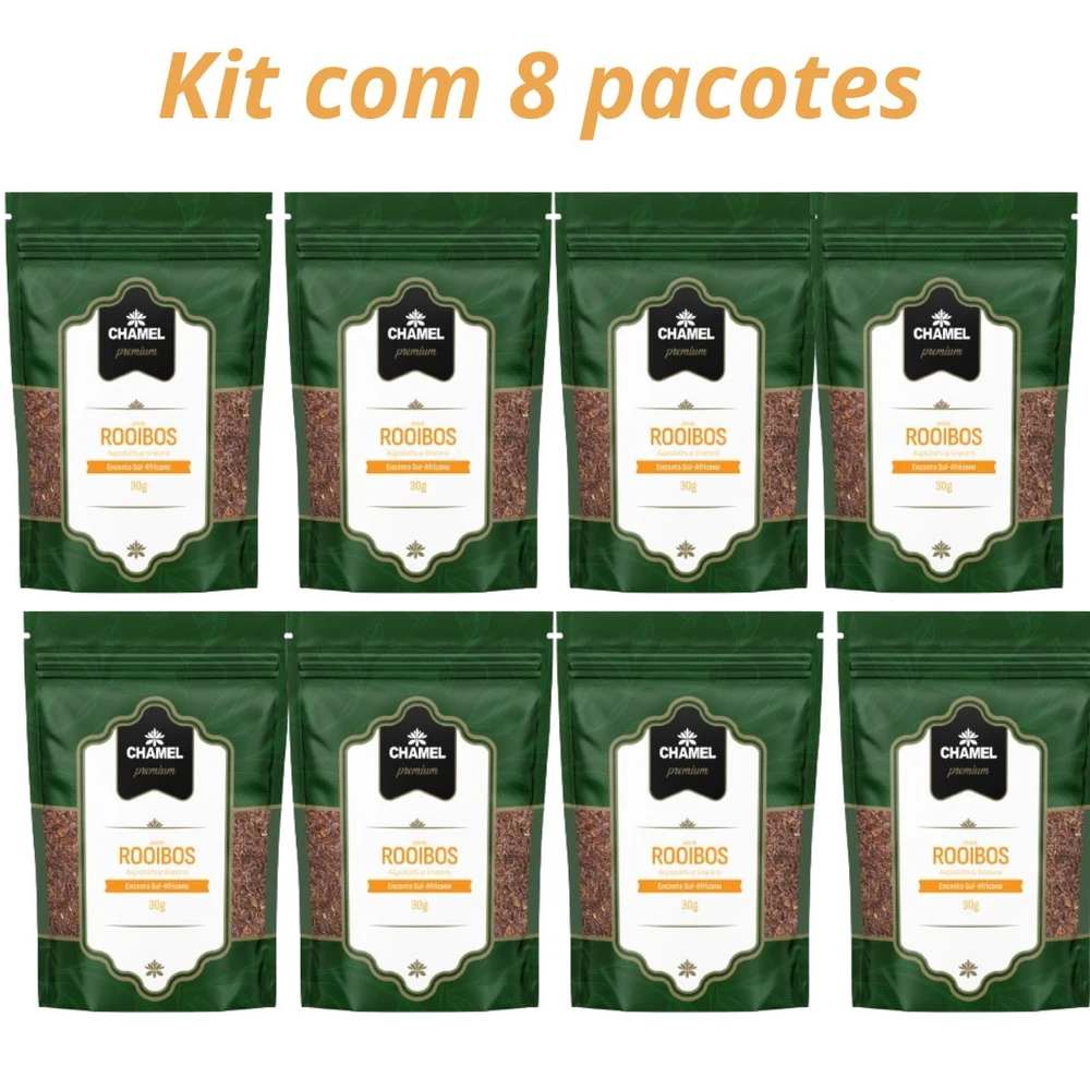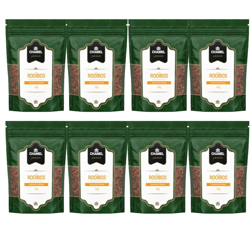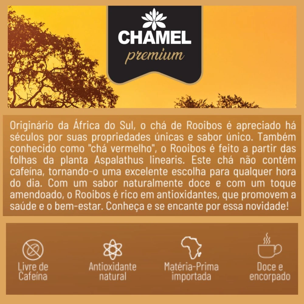 Chá de Rooibos (Aspalathus linearis) Quantidade: 8 pacotes de 30 g Marca: Chamel (linha Premium)