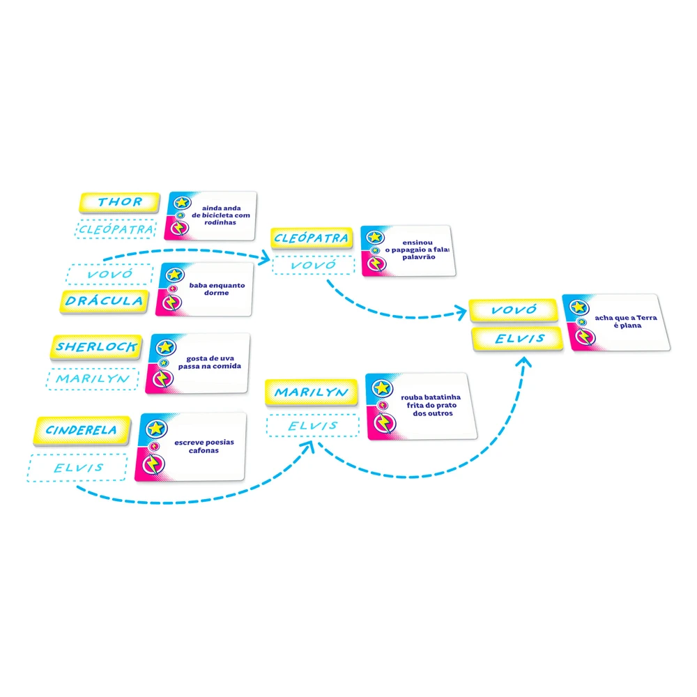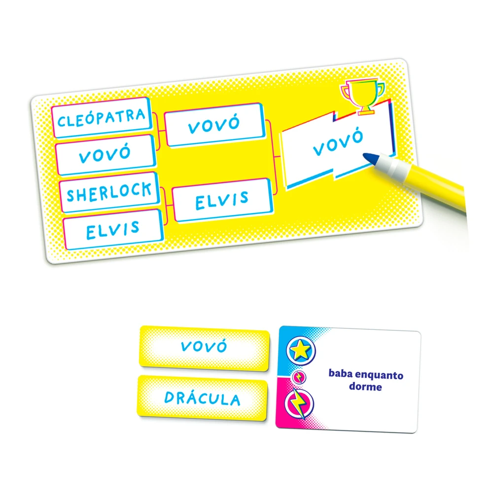Você e seus amigos escolhem 8 Competidores (que podem ser personagens famosos, celebridades e até mesmo o nome de alguém ao redor da mesa!) que se enfrentarão em uma série de Duelos com perguntas capciosas.