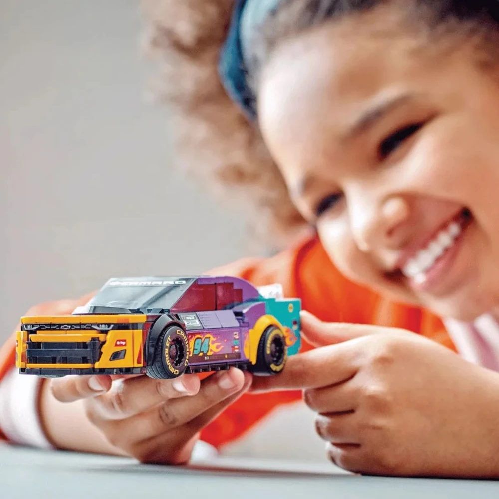 Meninos e meninas com mais de 9 anos e fãs da NASCAR® podem colecionar, construir, brincar e exibir este carro de brinquedo LEGO® Speed ??Champions NASCAR Next Gen Chevrolet Camaro ZL1 (76935) para crianças. Este poderoso carro de corrida decorado com cores vibrantes e chamas inclui detalhes de design de carros da vida real que correm na NASCAR Cup Series.