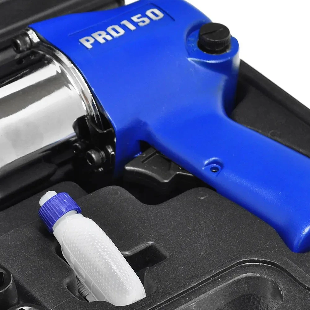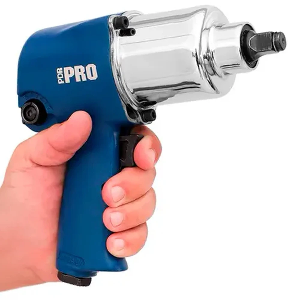 🧷 Marca: PDR 🧷 Modelo: PRO‑150K 🧷 Dimensões (C x L x A): cerca de 20 × 8 × 20 cm 🧷 Peso: aproximadamente 2,6 kg 🧷 Materiais/Acabamento: liga metálica resistente 🧷 Cor: azul (maleta plástica) 🧷 Voltagem: pneumática (ar comprimido) 🧷 Capacidade: torque máximo 68 Kgfm (≈ 576 Nm); torque de trabalho entre 197–576 Nm