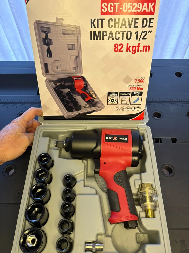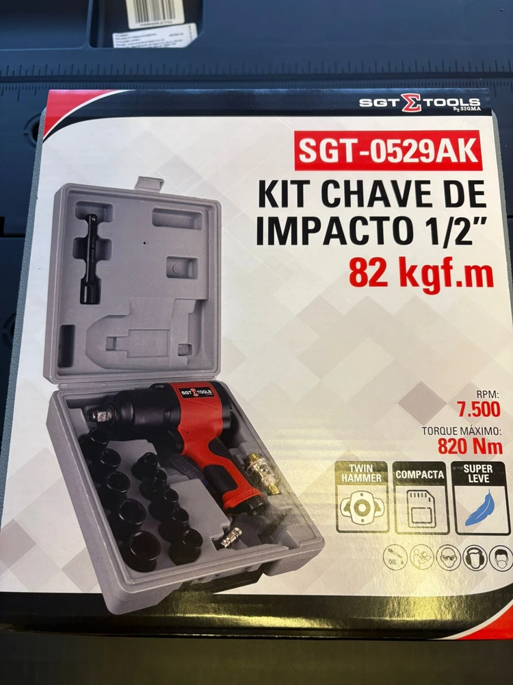 🔧 CHAVE DE IMPACTO PNEUMÁTICA 1/2″ – KIT PROFISSIONAL SIGMA SGT‑0529AK (82 kgf·m)
