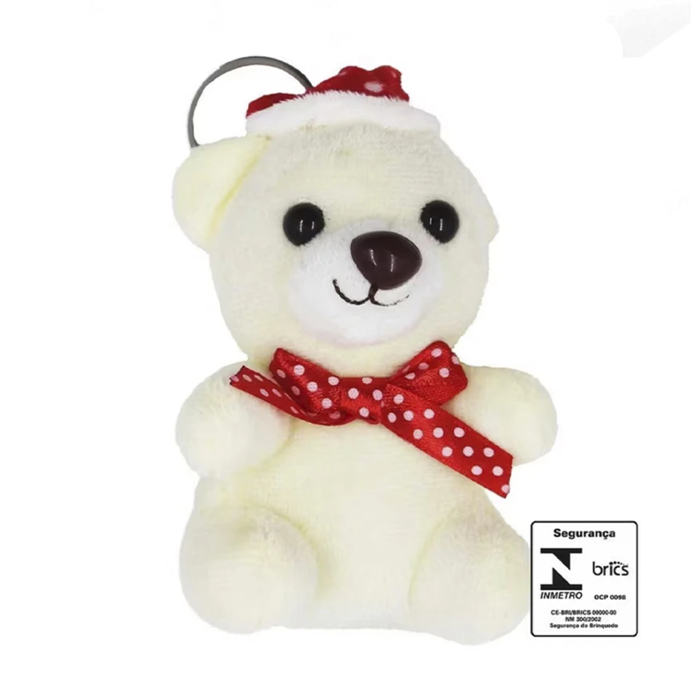 Chaveiro de Pelúcia Urso com Gorro 13cm – charme e maciez para seus pertences