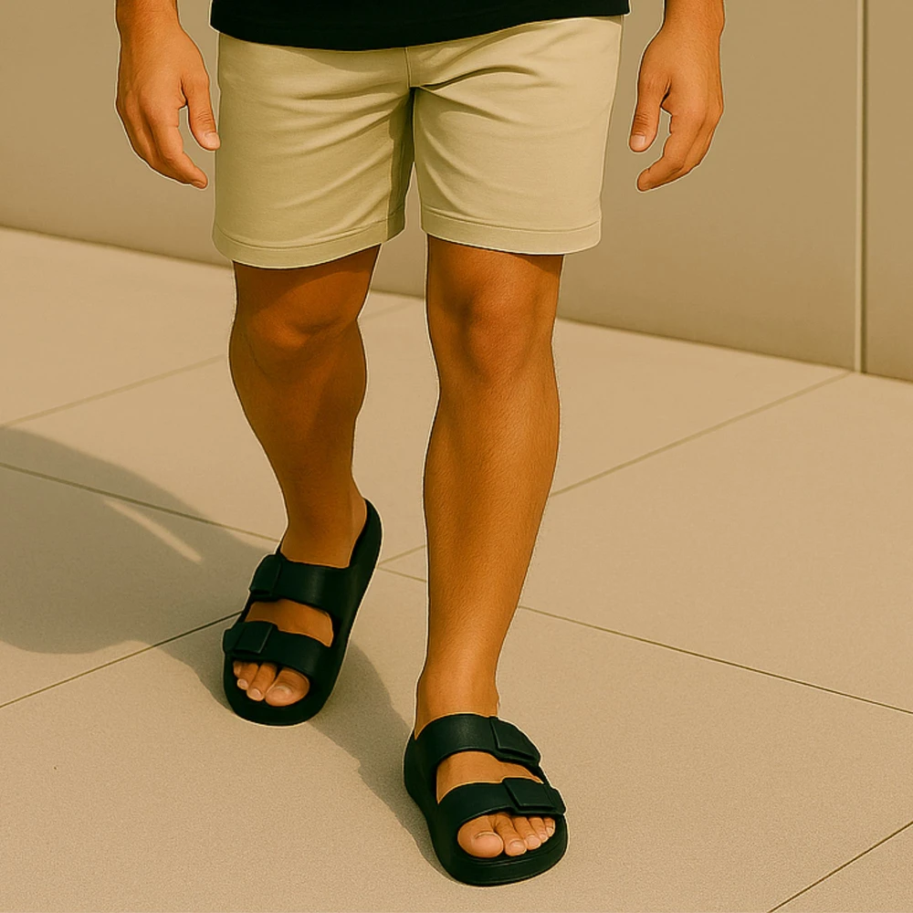 O Chinelo Birken foi feito para quem busca conforto absoluto sem abrir mão de estilo e personalidade. Com duas fivelas ajustáveis e solado robusto, ele tem aquele visual sólido e moderno que combina com qualquer rotina, do descanso pós-treino ao fim de semana tranquilo. Feito em materiais de alta qualidade, oferece firmeza, leveza e um encaixe anatômico, garantindo bem-estar a cada passo. A elevação interna de até +4 cm dá um toque extra de postura e confiança, sem perder a naturalidade. Cores disponíveis: Preto e Verde Estilo: Casual esportivo com pegada minimalista Altura extra: +4 cm de forma discreta e natural Ideal para: Homens que valorizam conforto, praticidade e presença no dia a dia. O Birken é o tipo de chinelo que combina leveza e personalidade. Vai bem com bermuda, calça leve ou jeans, e é perfeito para momentos de lazer, viagens ou ou encontros casuais com quem importa. Prático, firme e confortável, o Birken é para quem prefere presença sem esforço. Ficha técnica:Tipo de calçado: ChineloSegmento: PadrãoTipo de solado: Borracha sintéticaTipo de fechamento: Zíper lateralImpermeabilidade: Totalmente impermeávelFormato do bico: RedondaAltura da palmilha: 4 cmFundada com paixão por calçados inovadores, a Eleva Calçados revolucionou o mercado de sapatos com elevação criando calçados que aumentam a altura, combinando estilo, conforto e discrição. Nossa equipe de artesãos e engenheiros talentosos trabalha incansavelmente para desenvolver sapatos com tecnologia de elevação oculta que adiciona 5-10 cm de altura sem comprometer o conforto ou a estética. Utilizamos os melhores materiais e empregamos técnicas tradicionais junto com tecnologia de ponta para criar o sapato com elevação perfeito. Na Eleva, acreditamos que a confiança começa dos pés para cima. Nosso compromisso com a qualidade e atenção aos detalhes garante que cada par de sapatos Eleva dê a você mais altura, literal e figurativamente.