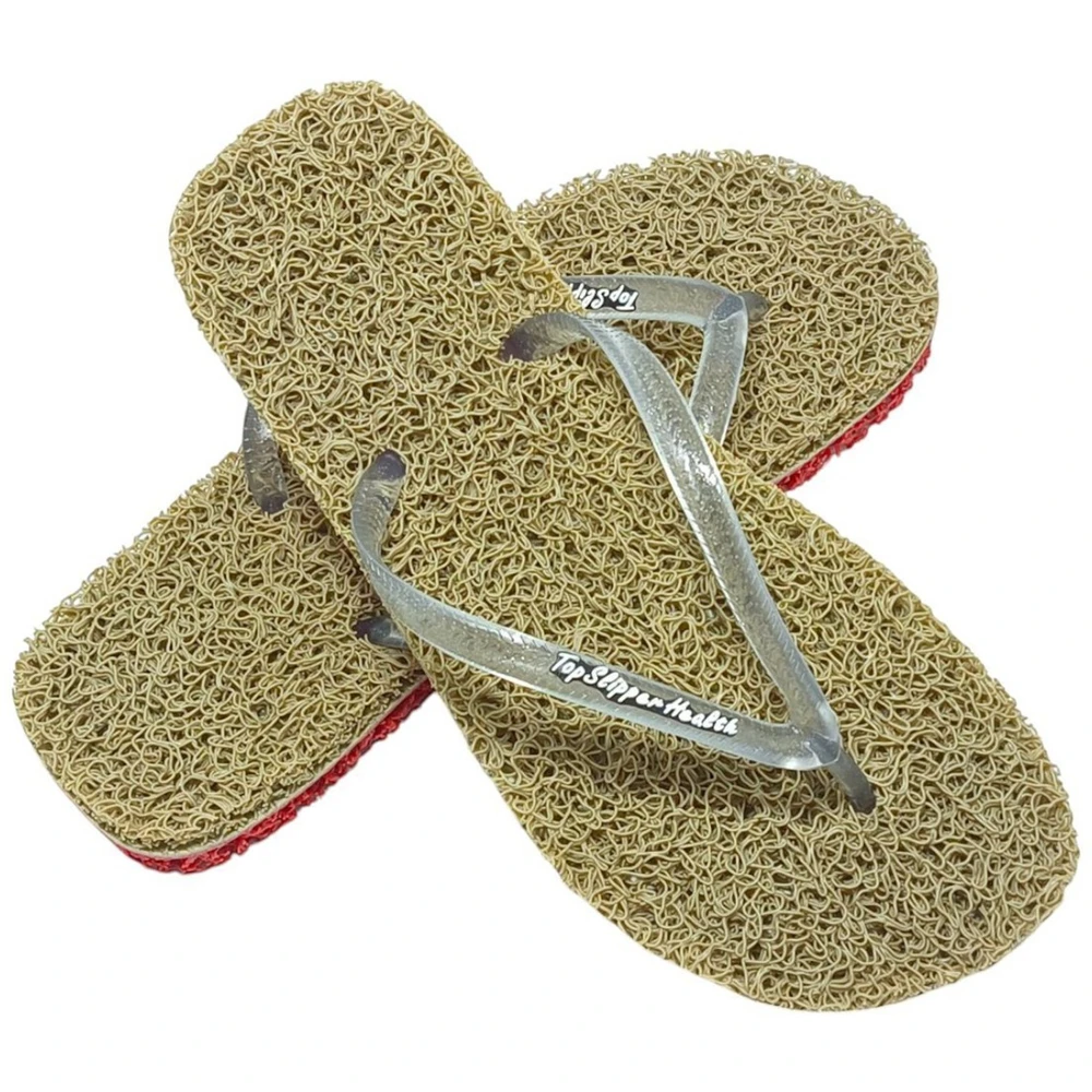 - ESFOLIANTE: Remove gradativamente as células mortas na sola dos pés reduzindo consideravelmente as incômodas lixações. Com os Chinelos TopSlipper, nada de pés rachados. A função de esfoliação é significativamente amplificada se utilizados no banho mas, para sua segurança, mantenha seu tradicional tapete de banho.