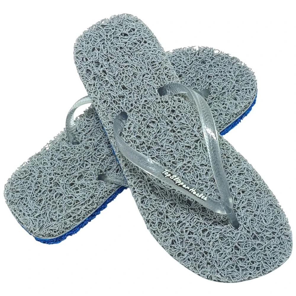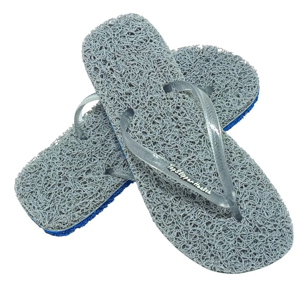 Por que utilizar em casa um chinelo comum se você pode utilizar um legítimo chinelo TopSlipper e ter vários benefícios para saúde de seus pés? Leia abaixo e saiba mais.Tanto a sola quanto a parte de cima são fabricados em vinil trançado de altíssima qualidade que lhe proporcionará, além de conforto e segurança, diversos outros benefícios.Ainda utilizamos processo exclusivo de fabricação de termo fusão que garante total qualidade ao produto em qualquer temperatura, no seco ou molhado.Veja os benefícios para você:- MASSAGEADOR: Ao pisar, a trama de vinil se molda aos pés exercendo pressão semelhante em todos os pontos promovendo a massagem da sola dos pés.- RELAXANTE: Promove a procurada sensação de bem estar pois reduz a fadiga dos membros inferiores.- HIPERIDROSE: Se você sua excessivamente na sola dos pés, o Chinelo TopSlipper também é a solução. Devido à sua trama promove uma super ventilação aliviando consideravelmente a sensação de pés úmidos.- PROBLEMAS DE CIRCULAÇÃO: Com os Chinelos TopSlipper há um grande estímulo à circulação sanguínea nos membros inferiores devido as centenas de pontos com e sem pressão ao pisar. Muito indicado para, por exemplo, diabéticos.- FASCITE PLANTAR: Por se tratar de um processo inflamatório, o aumento da circulação sanguínea proporcionada pelos Chinelos TopSlipper auxilia no tratamento e prevenção de dores nas solas dos pés.- ESPORÃO DE CALCÂNEO: Por ser extremante macio e moldável ao pé ao pisar, reduz impactos na região e promove um massageamento suave no local auxiliando no tratamento e na prevenção.- ESFOLIANTE: Remove gradativamente as células mortas na sola dos pés reduzindo consideravelmente as incômodas lixações. Com os Chinelos TopSlipper, nada de pés rachados. A função de esfoliação é significativamente amplificada se utilizados no banho mas, para sua segurança, mantenha seu tradicional tapete de banho.- Anti derrapante. Maior segurança em diversos pisos. Mas mantenha os cuidados em pisos molhados que você não sabe que produtos estão no local como detergentes, sabão em pó, etc. No banho, mantenha seu tradicional tapete de banho.Como pode-se observar acima, os Chinelos TopSlipper são uma solução muito acessível para diversos males dos pés e dos membros inferiores como um todo.Os Chinelos TopSlipper são confeccionados artesanalmente, um a um, com rígido controle de qualidade e fino acabamento. Para total segurança do usuário, não utilizamos cola de contato. Utilizamos processo exclusivo de termo fusão. Assim, não há risco de soltar mesmo caminhando em superfícies quentes como asfalto ao sol de verão.Este modelo não deve ser utilizado em pisos abrasivos como calçadas ou asfalto pois o solado é mais sensível para que lhe ofereça de forma ampla diversos benefícios à saúde de seus pés.Cuide bem de seus pés com um produto de qualidade. Cuide bem de você. Use Chinelos TopSlipper.