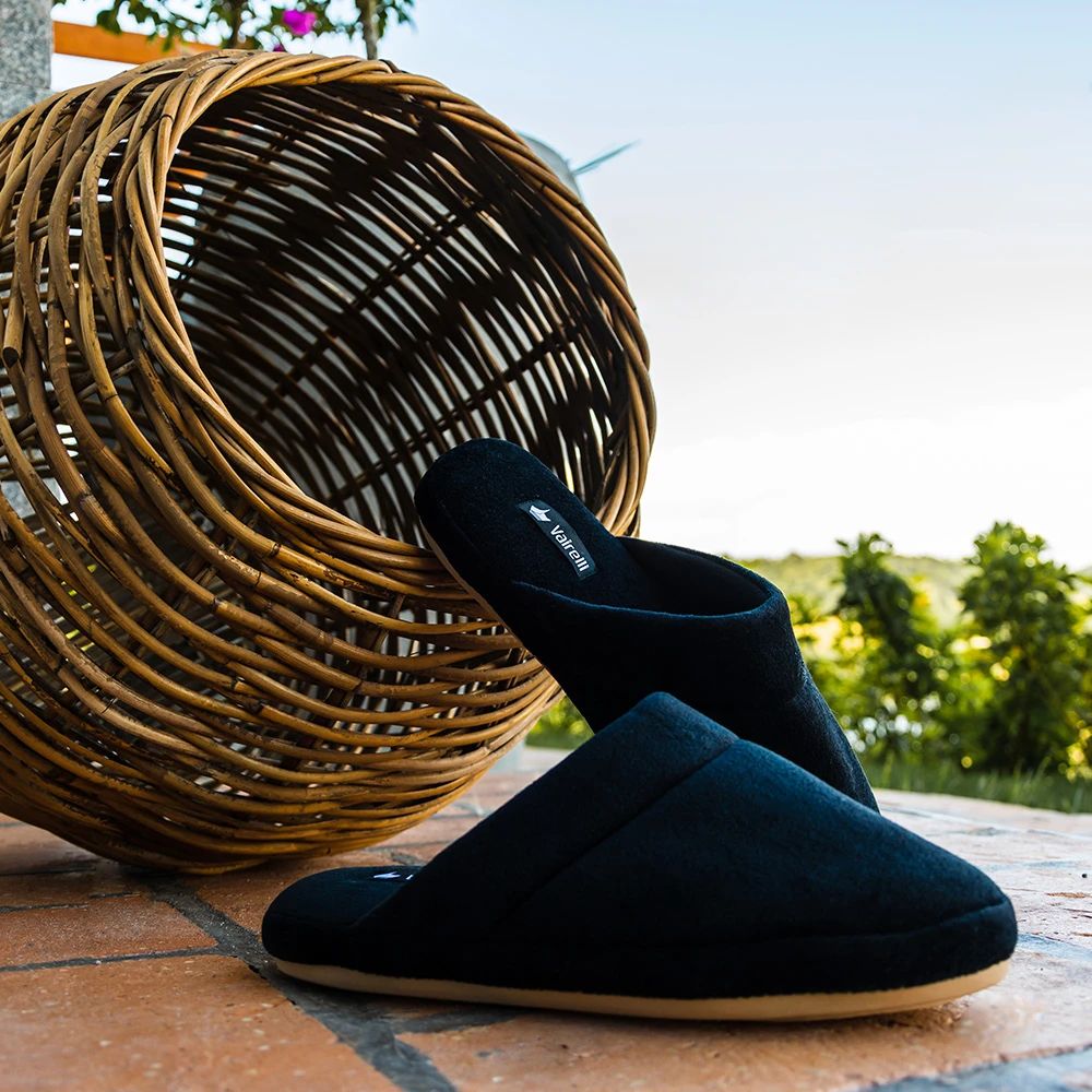 O Chinelo Masculino HR é feito todo em plush, o que além de aquecer, mantém a temperatura dos seus pés. Possui um solado antiderrapante, o que permite mais mobilidade. Pode ser lavado na máquina (não recomendamos uso de água quente ou alvejantes), sem deformar ou formar bolinhas “ desde que não haja atrito com etiquetas anéis e outros objetos durante o uso ou até mesmo durante a lavagem”.