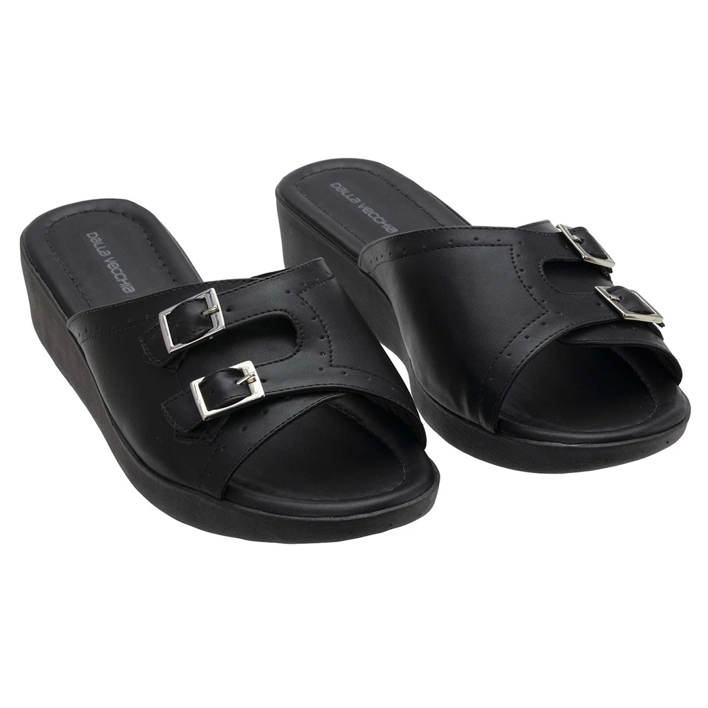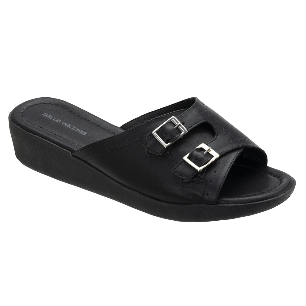 Sandália Rasteira em laminado sintético com solado em borracha antiderrapante.
