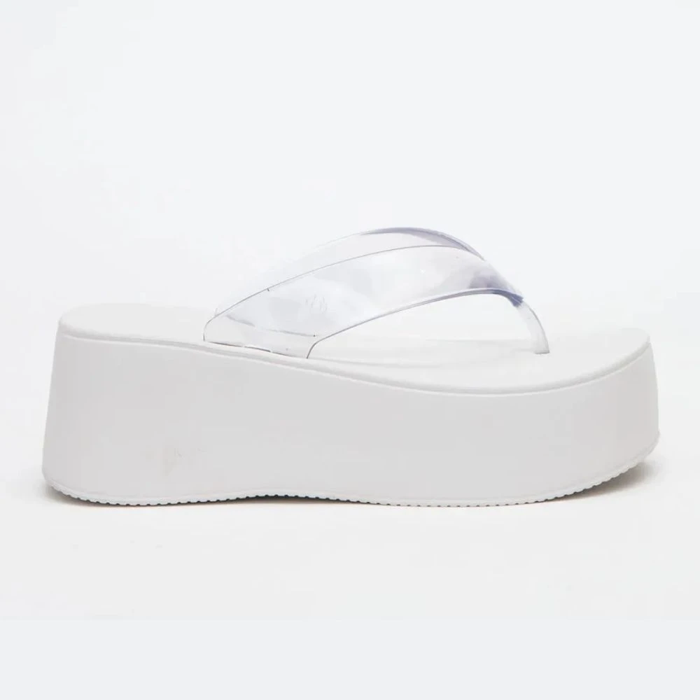 Chinelo Feminino Plataforma Plus II Translúcido White Petite Jolie PJ7703