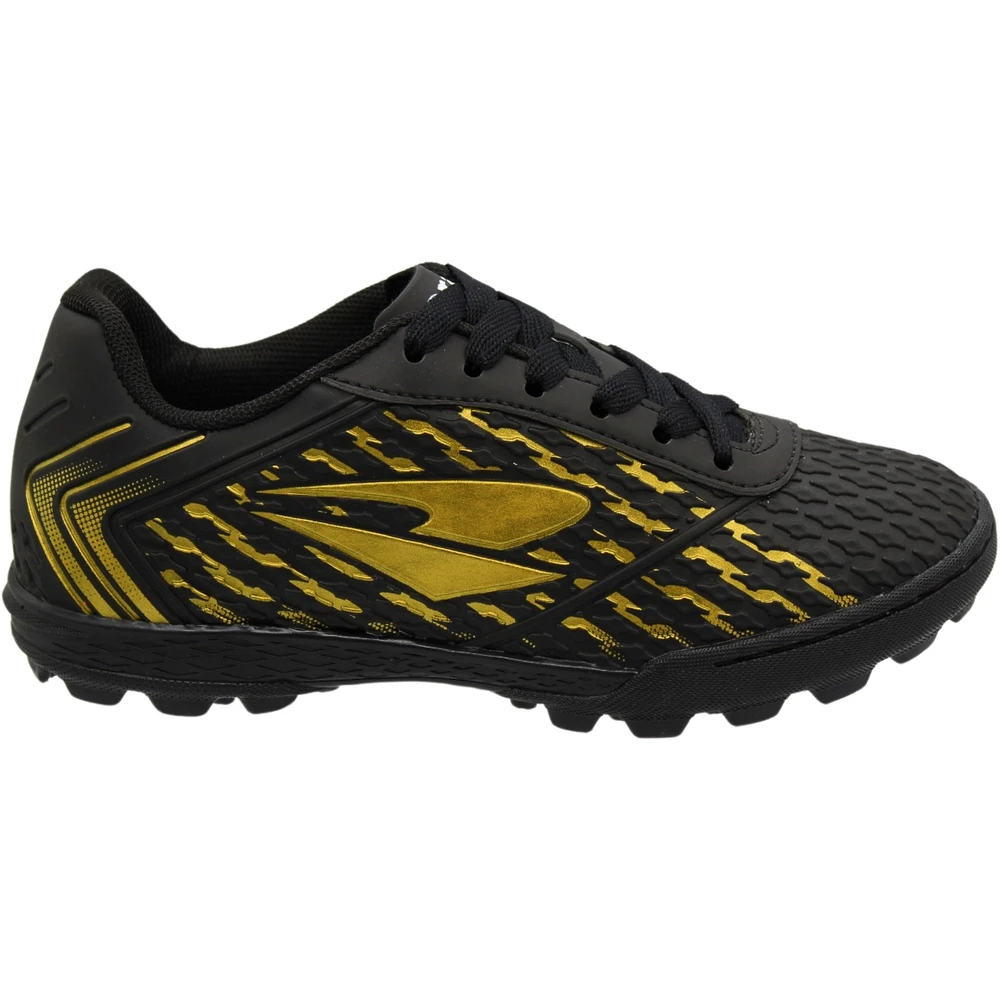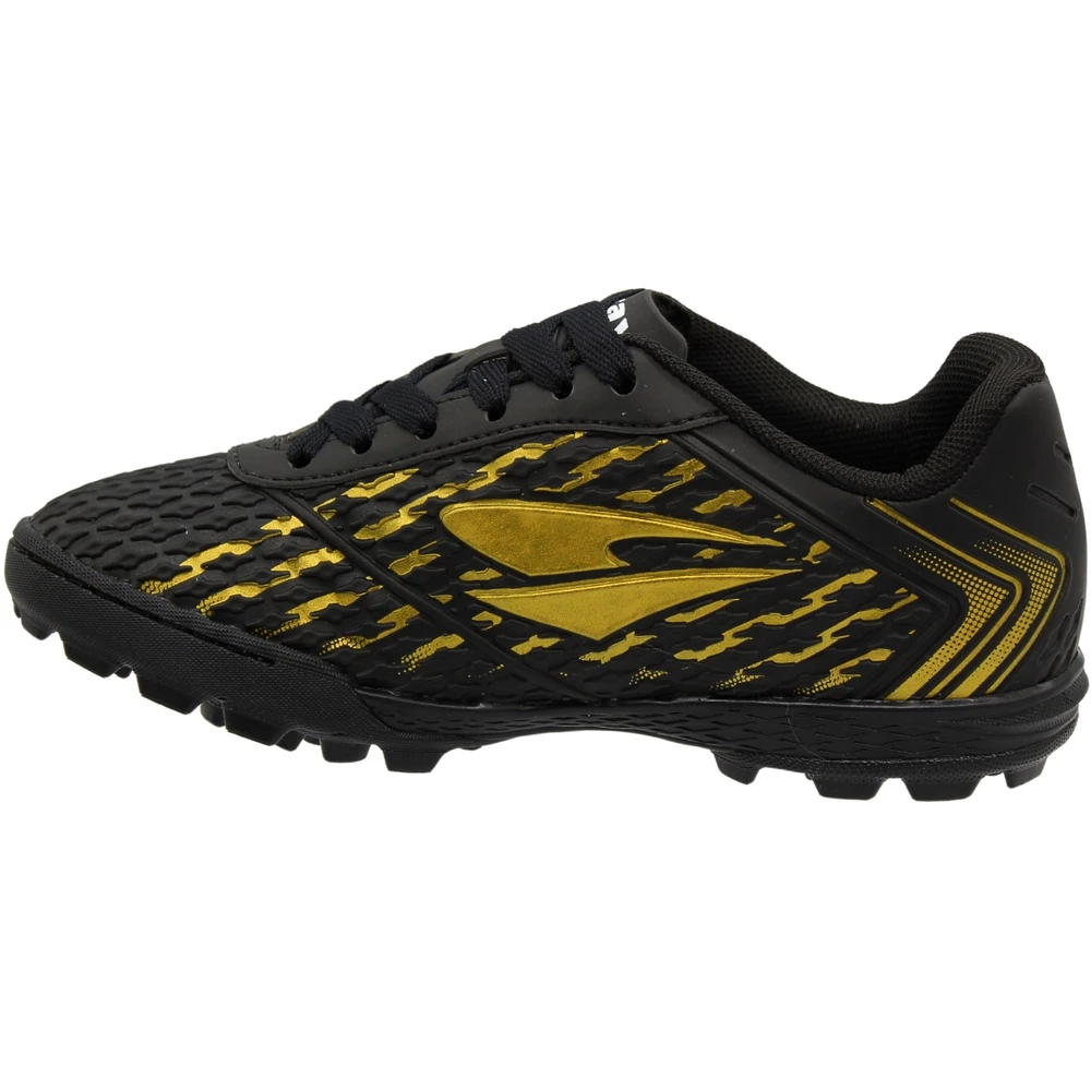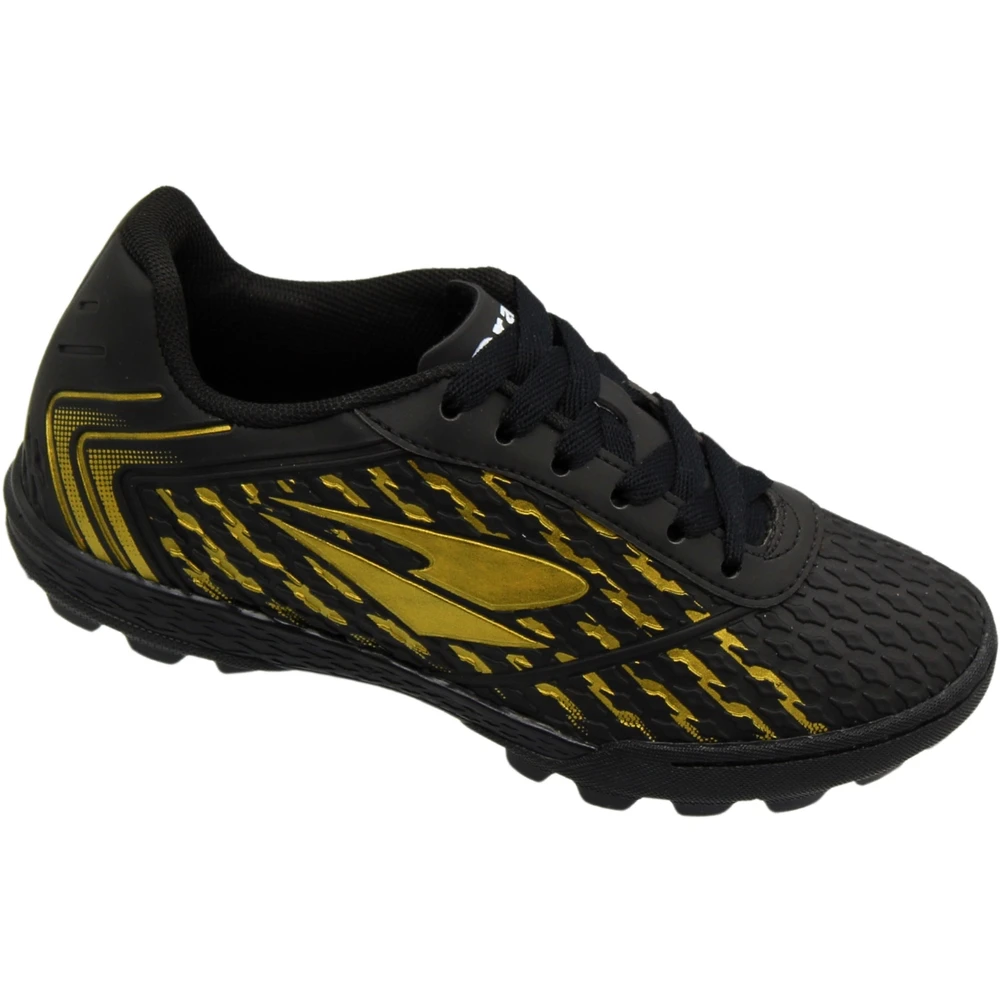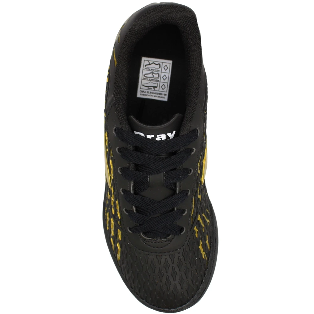 A Chuteira Infantil Dray Foorcy Society é a pedida certa para os pequenos que não saem do campinho! Desenvolvida especialmente para oferecer conforto, segurança e desempenho nas partidas de society, essa chuteira combina estilo marcante com funcionalidade. Seu cabedal sintético possui textura especial que melhora o controle, garantindo maior precisão nos passes e chutes. A combinação das cores preta e dourada confere um visual moderno. A parte interna é acolchoada, promovendo excelente conforto durante os jogos, além de contar com forro têxtil respirável que ajuda a manter os pés secos e ventilados. O fechamento em cadarço proporciona melhor ajuste e segurança ao caminhar ou correr. O grande destaque fica por conta do solado emborrachado com travas baixas e multidirecionais, que oferecem excelente tração e aderência nos gramados sintéticos.