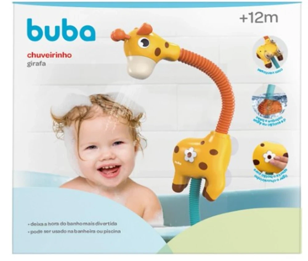 O Chuveirinho girafa da Buba é super divertido! Pode ser usado na hora do banho ou da piscina.