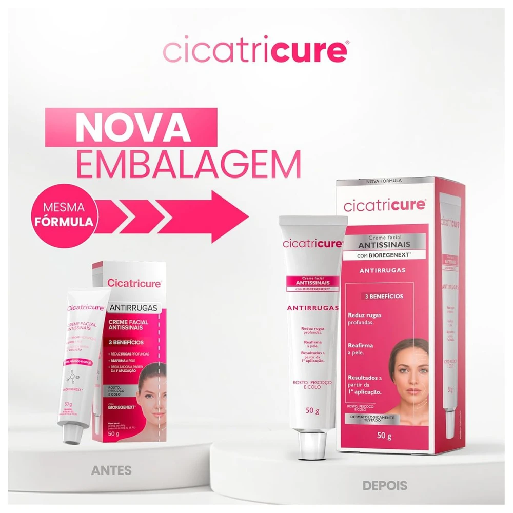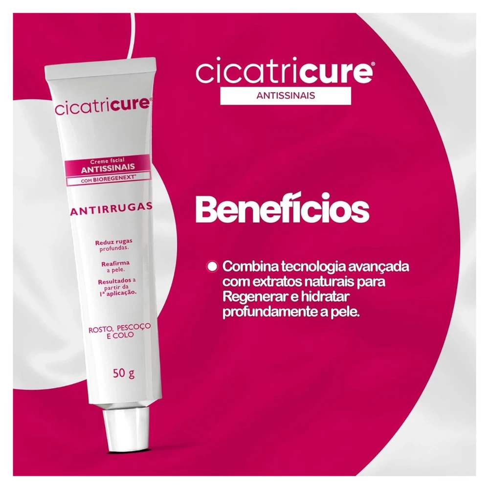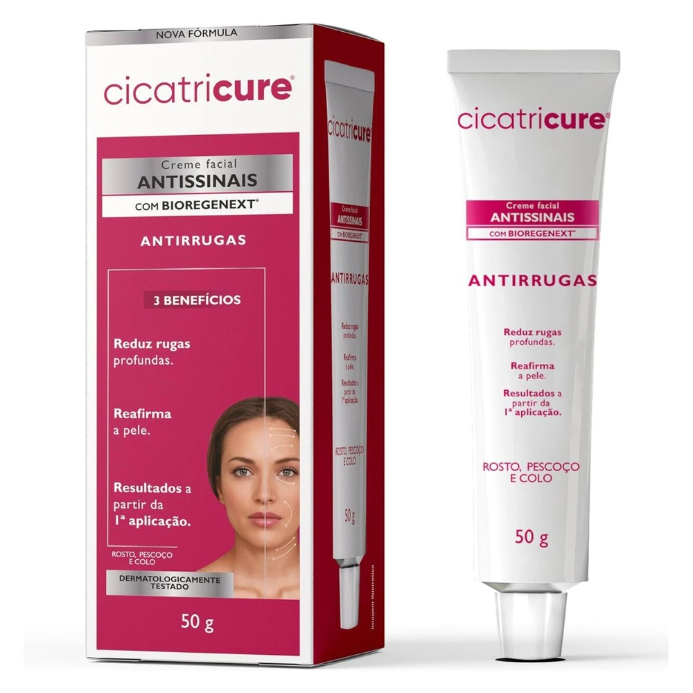 O Cicatricure Creme Antissinais 50g foi desenvolvido para reduzir visivelmente rugas e linhas de expressão, proporcionando uma pele mais firme, lisa e rejuvenescida.