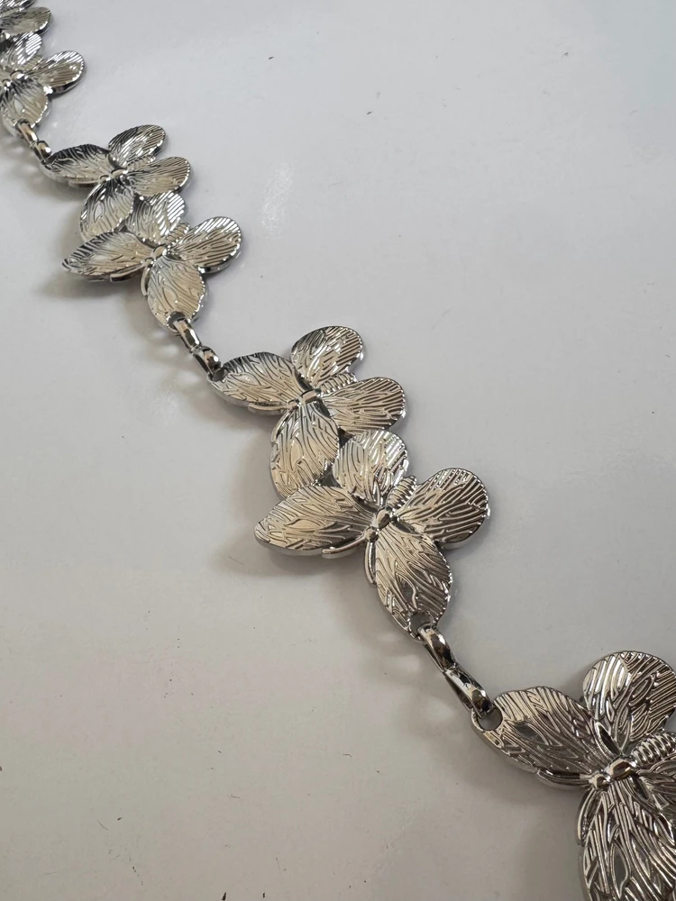 Confeccionado em metal de alta qualidade, o cinto possui uma corrente resistente e durável, com um fecho ajustável que se adapta perfeitamente ao seu corpo. Além disso, o seu diferencial está no desenho de borboletas que percorrem toda a extensão da corrente, trazendo um charme extra para a peça.
