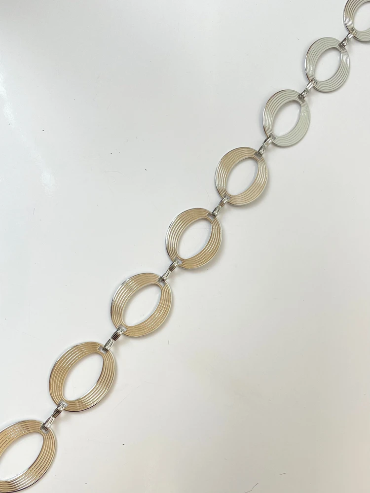 Com design moderno formado por elos ovais em alto relevo, ele adiciona um toque fashion e elegante, seja para produções casuais ou sofisticadas.