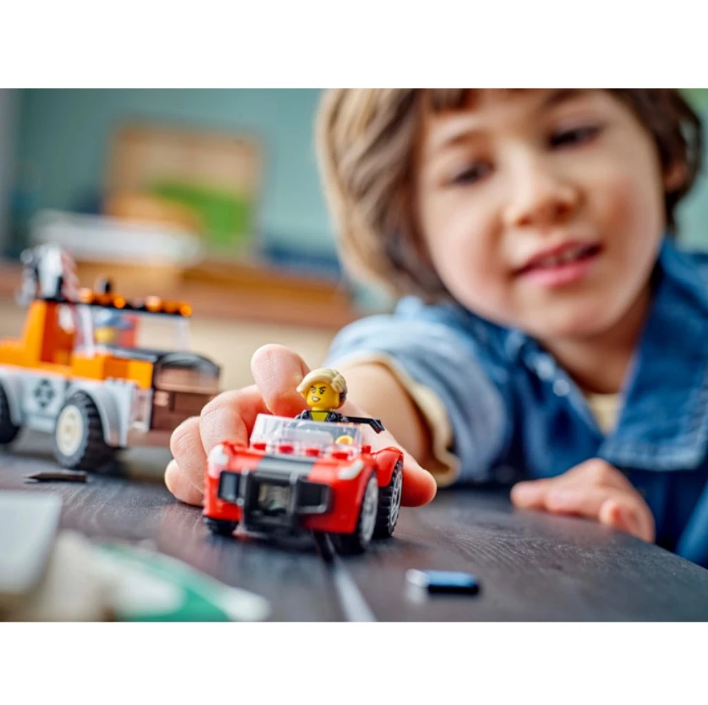 Junte-se ao seu herói cotidiano para aventuras divertidas com o conjunto de brinquedos LEGO City Tow Truck and Sports Car Repair (60435) para maiores de 4 anos. Este conjunto de construção criativo apresenta um brinquedo de caminhão de reboque com pneus robustos, uma cabine de motorista e um guincho funcional. Basta adicionar o carro esportivo, além das minifiguras de motorista e motorista para horas de brincadeira imaginativa e narrativa. Este conjunto de carros LEGO fácil de construir inclui um elemento LEGO Starter Brick, um guia ilustrado e instruções 3D no aplicativo LEGO Builder - um companheiro de construção digital com ferramentas intuitivas que permitem que as crianças ampliem, girem e visualizem modelos de todos os ângulos enquanto constroem. Os conjuntos LEGO City são ótimas ideias de presentes para crianças em feriados e aniversários, com veículos de brinquedo legais, estruturas realistas e personagens divertidos que inspiram brincadeiras imaginativas sem limites. As crianças podem adicionar este brinquedo de caminhão a outros conjuntos (vendidos separadamente) da coleção LEGO City para expandir o mundo de possibilidades de brincadeiras de faz de conta. Contém 101 peças.
