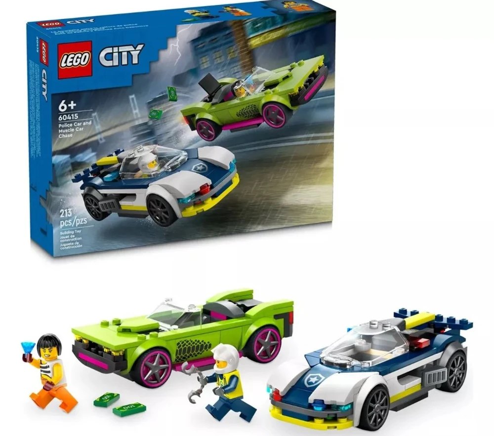 Carro de polícia de brinquedo para ação empolgante - Um emocionante conjunto LEGO® City Police Car e Muscle Car Chase para crianças a partir de 6 anos.