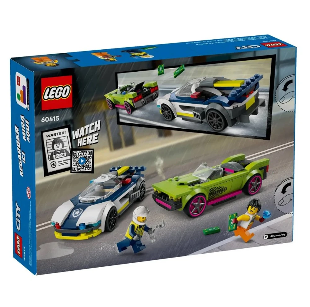 O conjunto LEGO® CityPerseguição de Carro da Policia e Muscle Car diversão e emoção em alta velocidade para crianças a partir de 6 anos. Com um interceptador policial e um veículo de fuga, juntamente com minifiguras de um oficial e um bandido, este conjunto oferece a oportunidade para dramatizações envolventes e contação de histórias.
