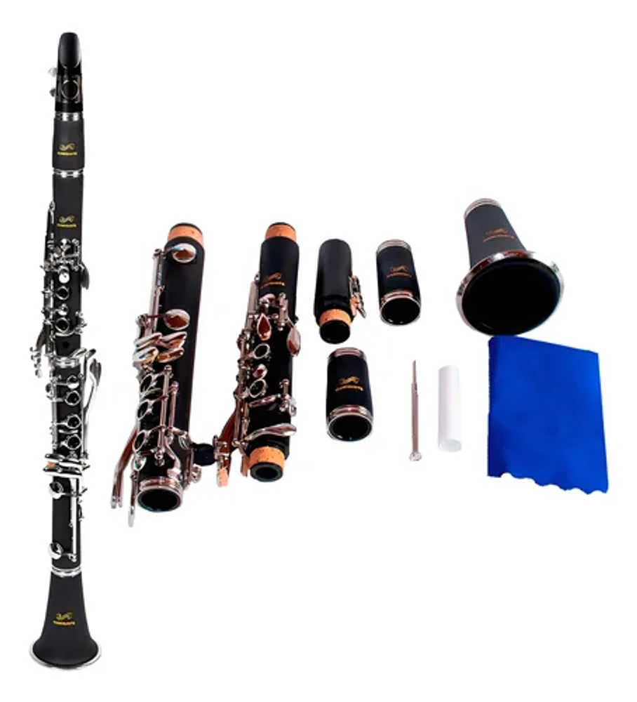 Clarinete em Bb (Si bemol) de 17 chaves com timbre aveludado e ergonômico, bom para iniciantes e músicos intermediários em gêneros como choro, samba, MPB e orquestras.