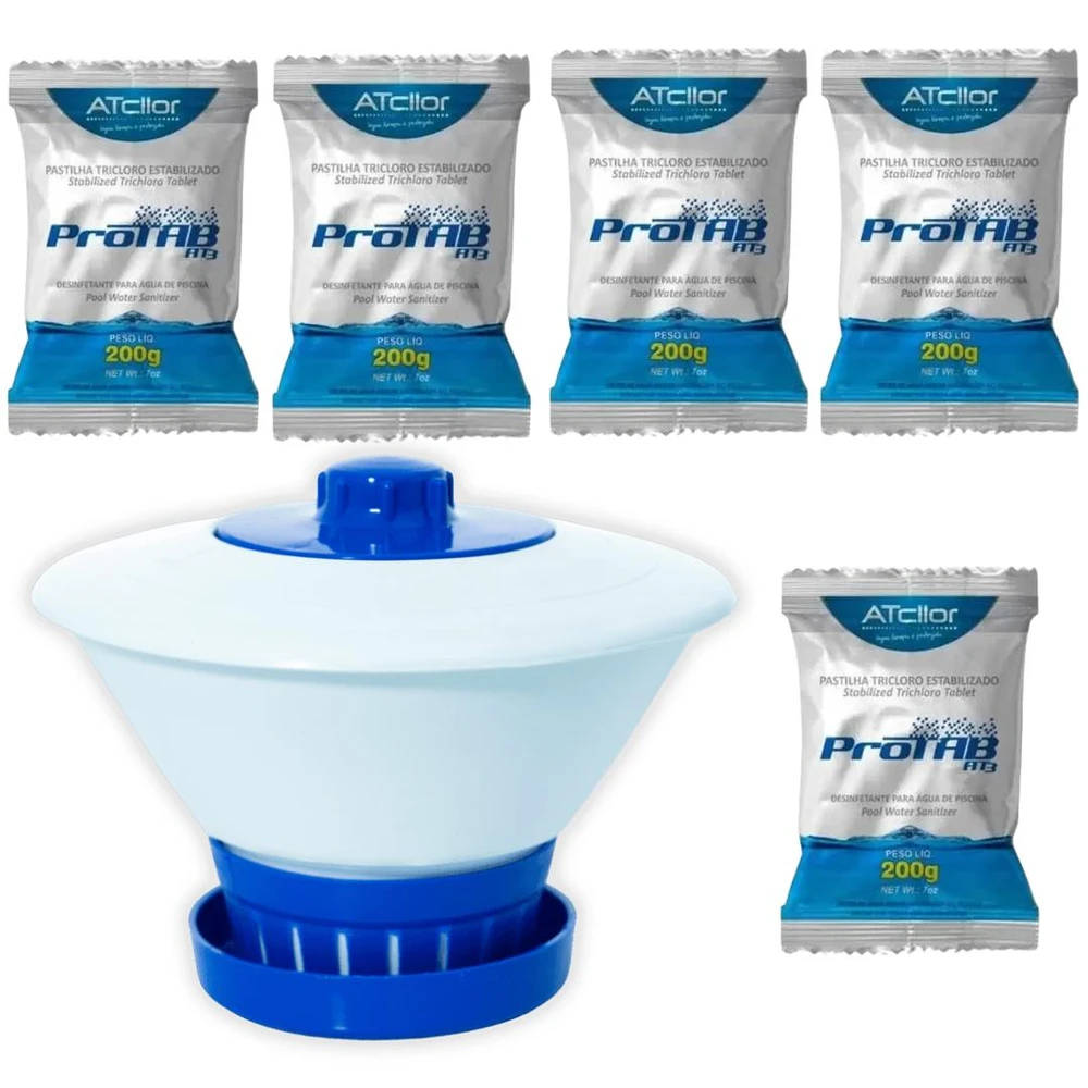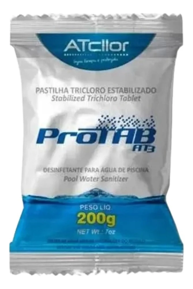 ProTAB AT3 apresentado na forma de tabletes 200 gramas alto teor de ativo, o tablete é acondicionado em flutuadores com adição controlada.