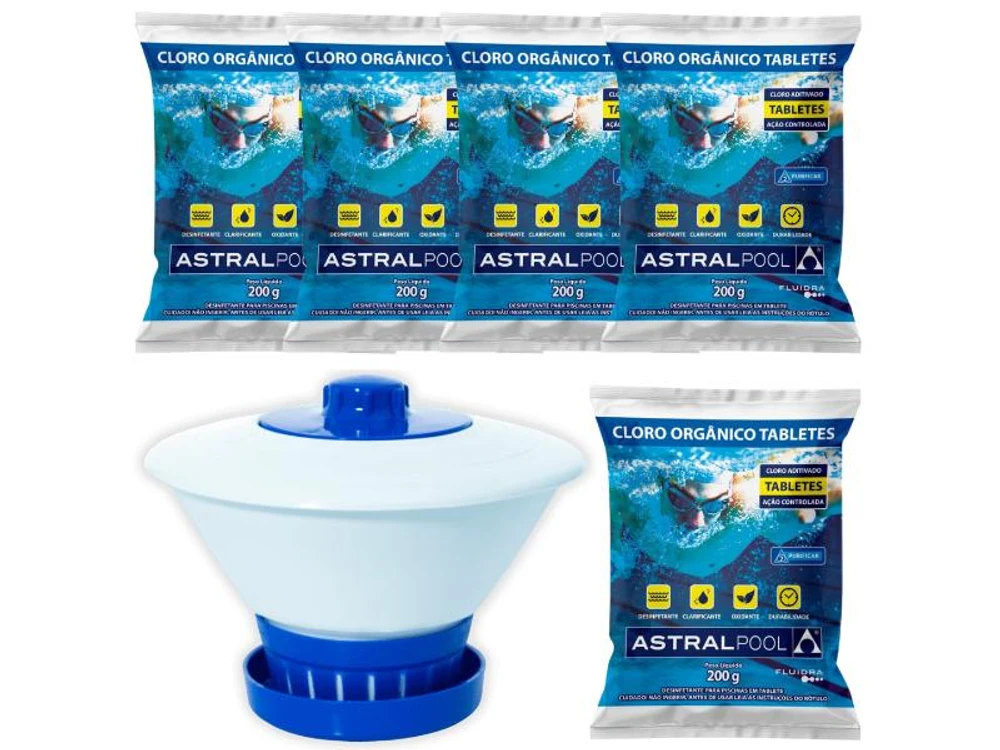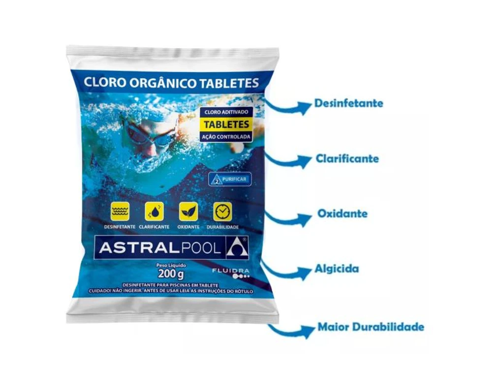 Produto concentrado, contém 86% de cloro ativo. Possui estabilizante que inibe a degradação do cloro pelos raios UV (raios solares). Astral Pool apresenta dissolução lenta para cloração contínua e automática. Sua fórmula múltipla ação é recomendada especialmente para quem quer praticidade aliada à qualidade. Poderoso desinfetante (cloro com estabilizante), clarificante, algicida e algistático. Indicado para piscinas residenciais.