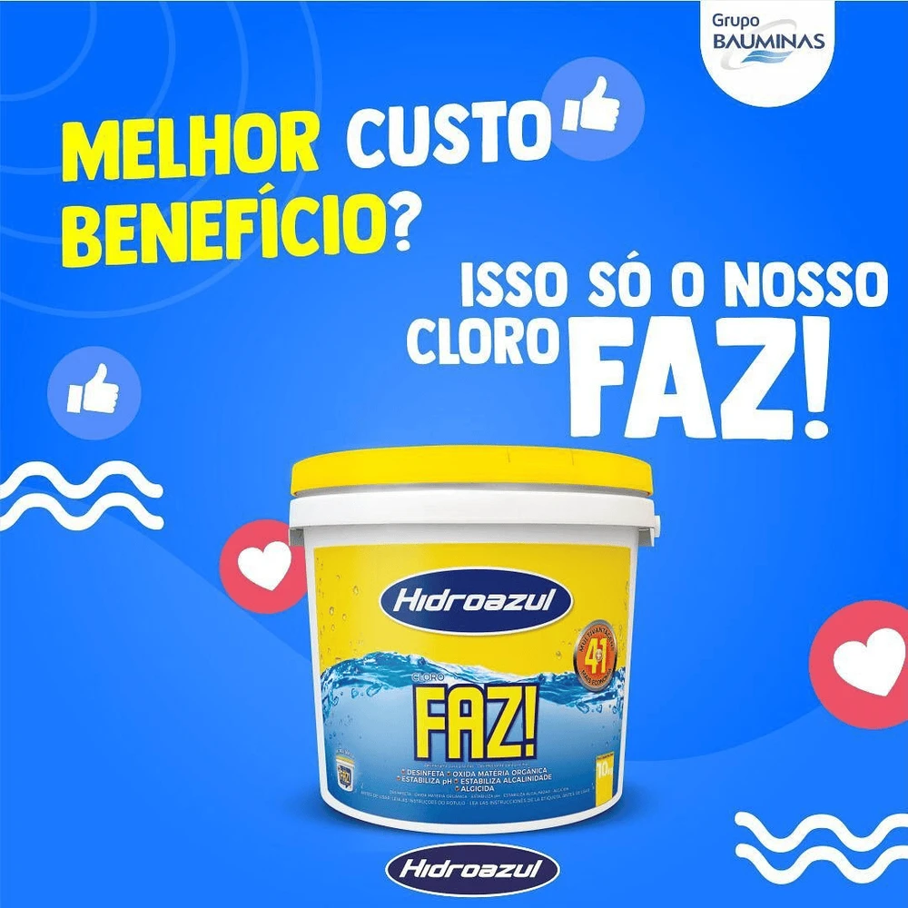 O Cloro FAZ da Hidroazul é um produto solúvel com alto rendimento para quem busca manter a sua piscina livre de matérias orgânicas, algas e prevenção de odores. Ele também contribui para a estabilização de alcalinidade e nível pH da água.