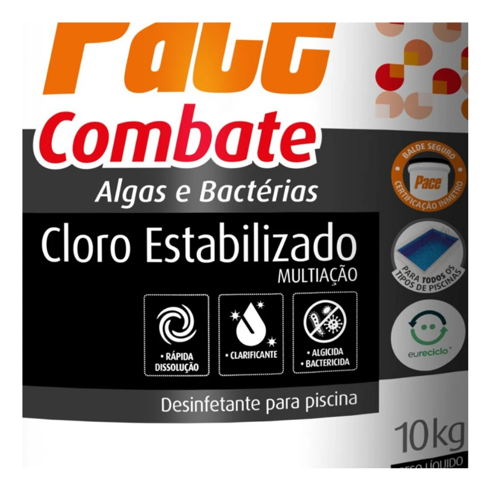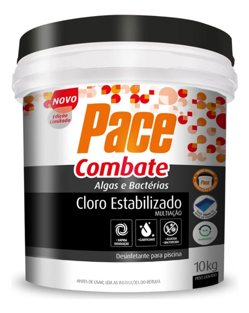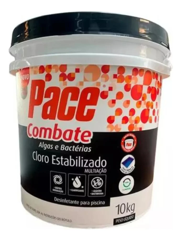 Pace Combate é um cloro granulado estabilizado com rápida dissolução, efeito clarificante, ação algicida e bactericida. Indicado para piscinas residenciais.