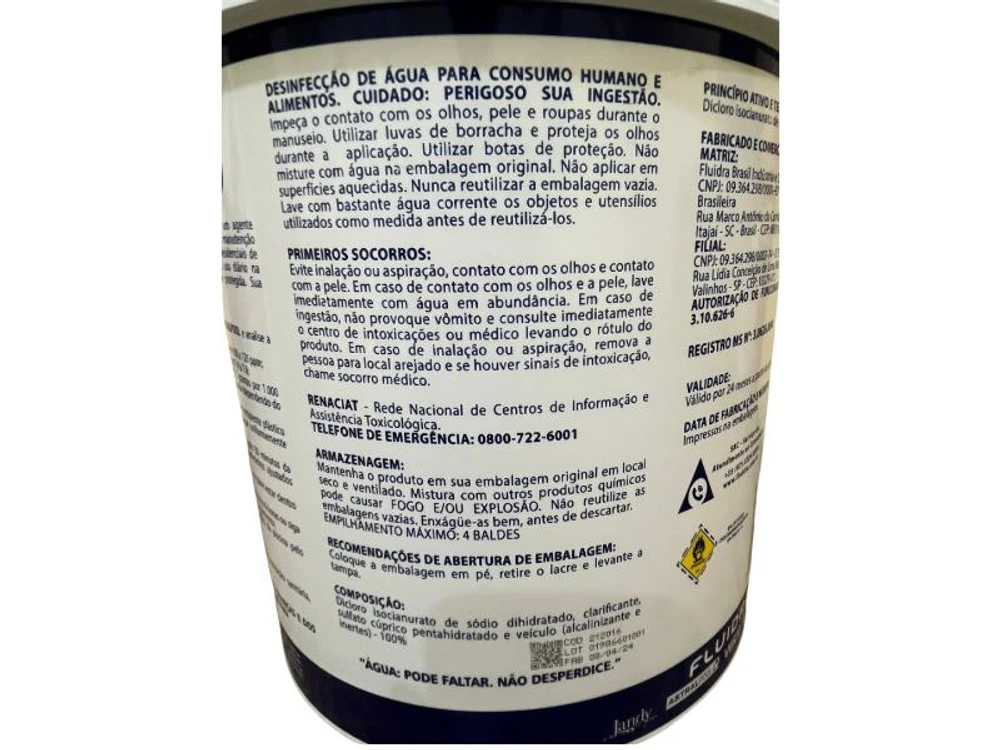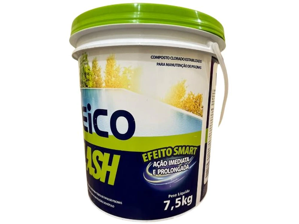 Embalagem Prática: O cloro é apresentado em um balde conveniente de 7,5 kg, facilitando o manuseio e armazenamento. A embalagem hermética ajuda a preservar a qualidade d