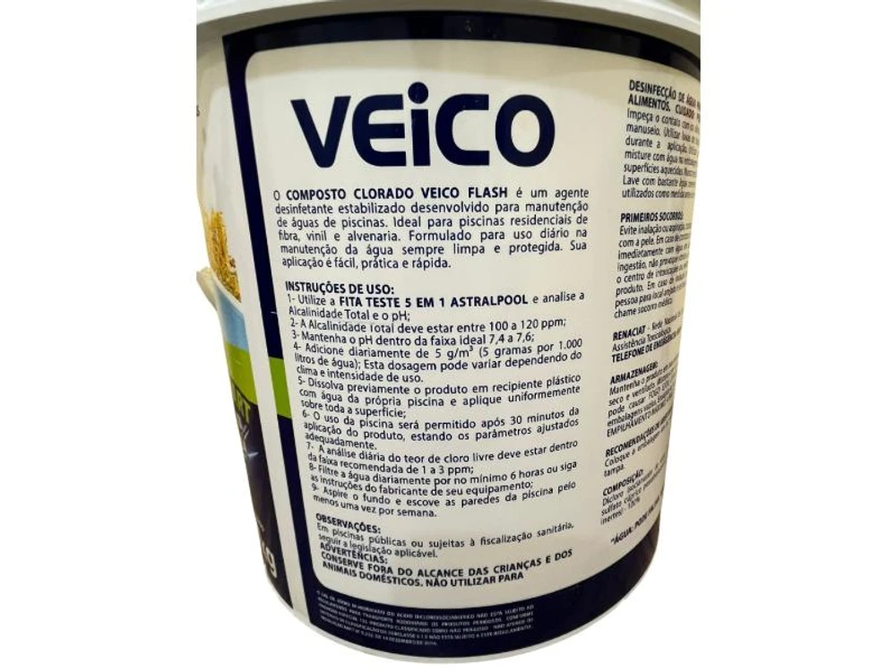 Veico Flash - Ação Ultra Rápida: Com a tecnologia Veico Flash, o cloro se dissolve rapidamente na água, proporcionando uma ação imediata. Isso significa que você pode desfrutar de uma piscina limpa e segura em tempo recorde, permitindo mais tempo para relaxar e menos tempo para a manutenção.