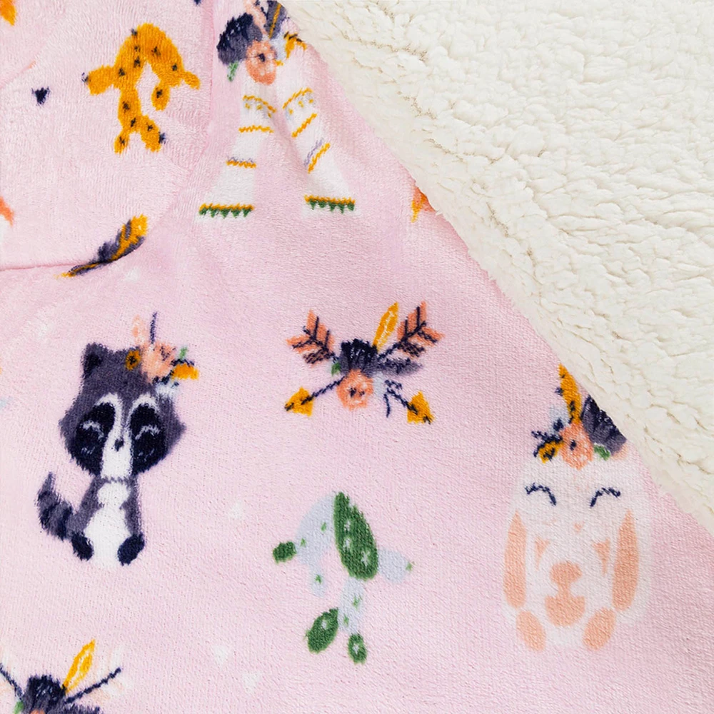 • Dupla face com flannel macia e sherpa fofinha.