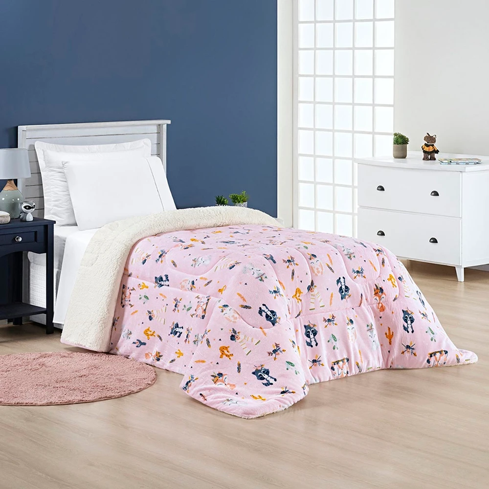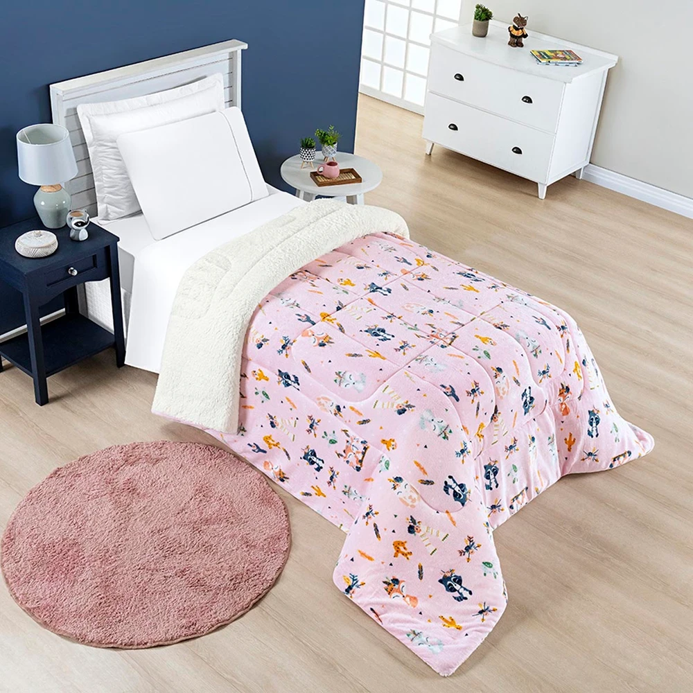 Coberdrom Cobertor Lutti Solteiro Quarto Cama Infantiil Sherpa Manta Toque Lã de Carneiro Foxy Raposinha Rosa