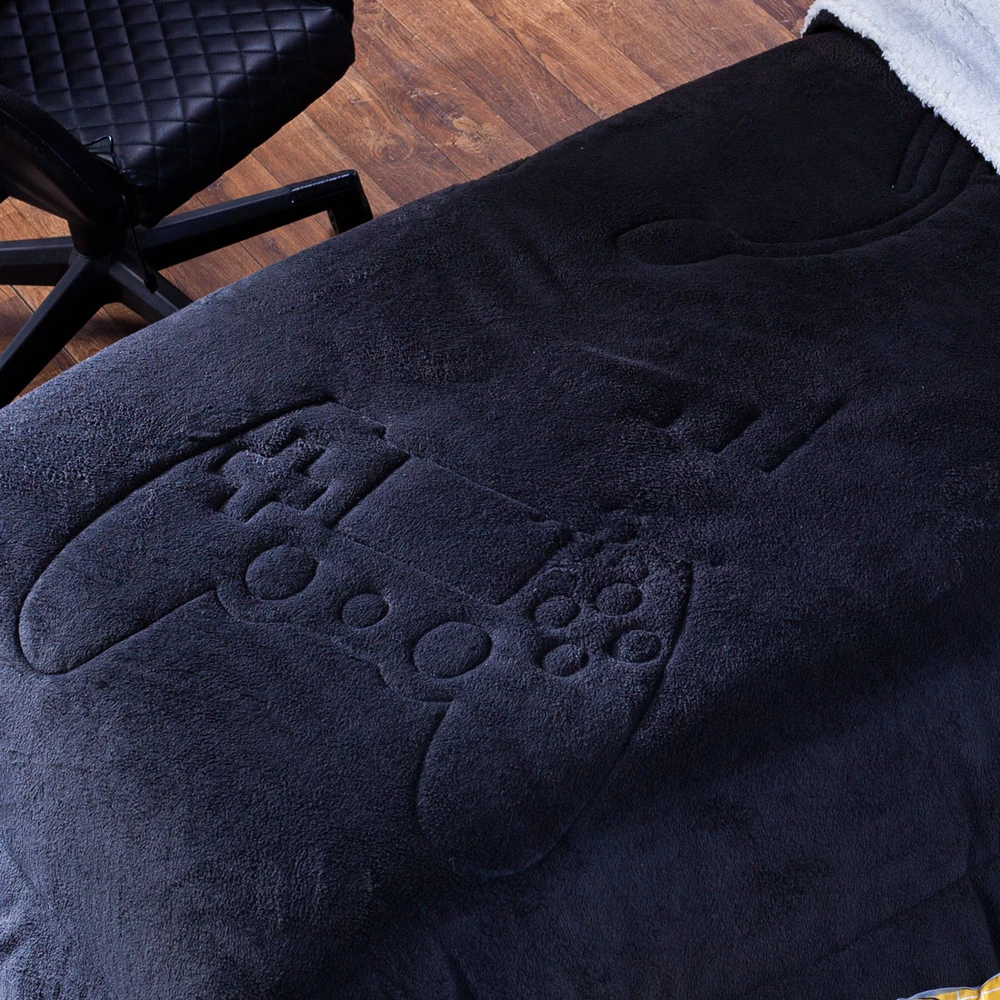 Coberdrom Game Streamer Preto Queen 03 Peças - Dupla Face Sherpa e Mantinha