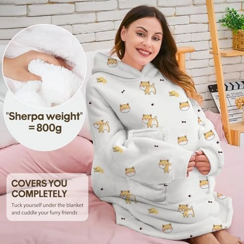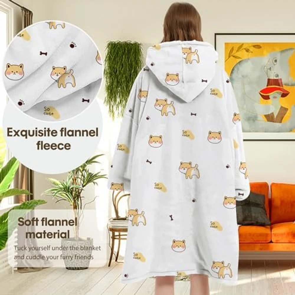Cobertor usável grande e fofo com capuz e capuz aconchegante para adultos moletom com capuz com bolso