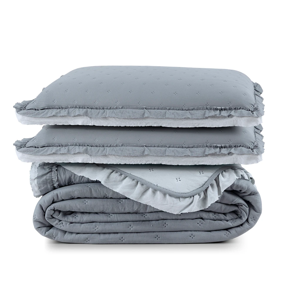 Cobre Leito Casal Micropercal 200 Fios com Babado Malvinni Cinza - 3 Peças