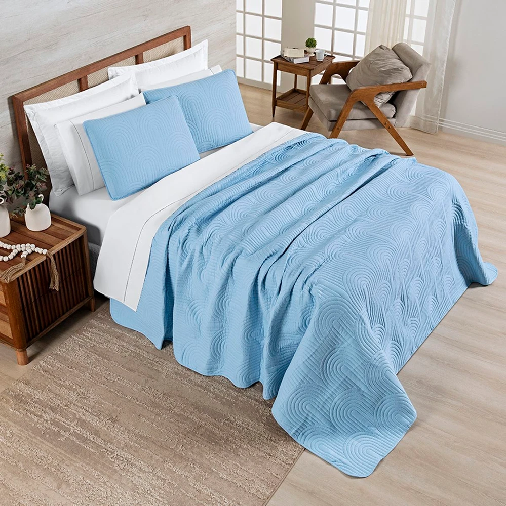 O cobre leito Riviera é perfeito para compor a camapa com leveza e harmonia. produzido em tecido micropercal 200 fios com toque de algodão com macidez indiscutivel.