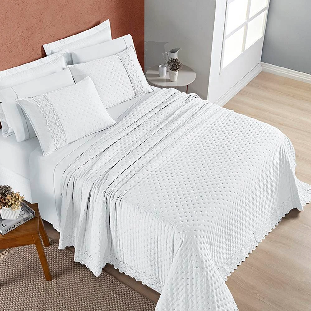 Cobre Leito Casal Padrão Nobless 200 Fios 3 Peças - Branco Neve