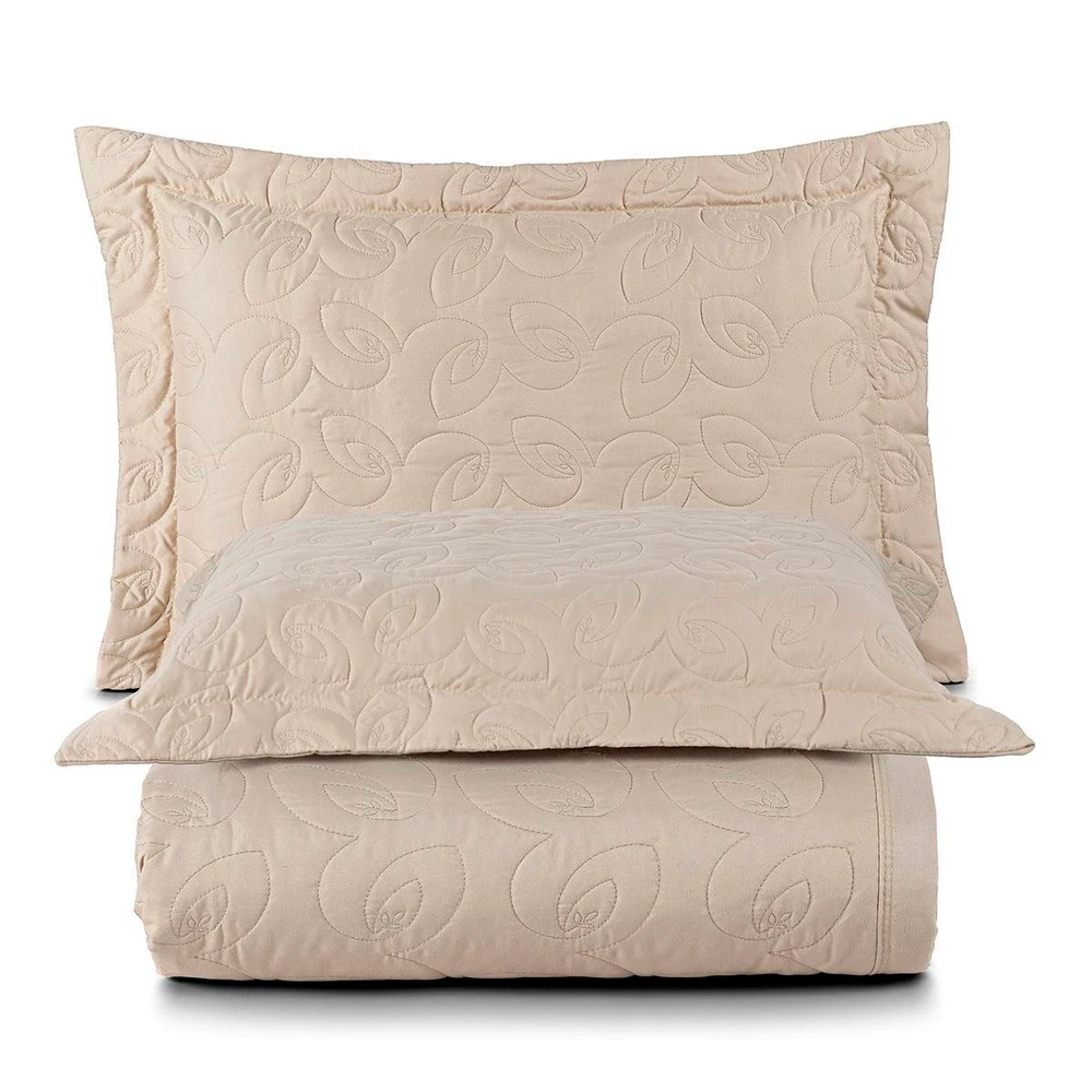 Cobre Leito King Agata Bordado 200 Fios 3 Peças - Cáqui - Micropercal 100% Poliester