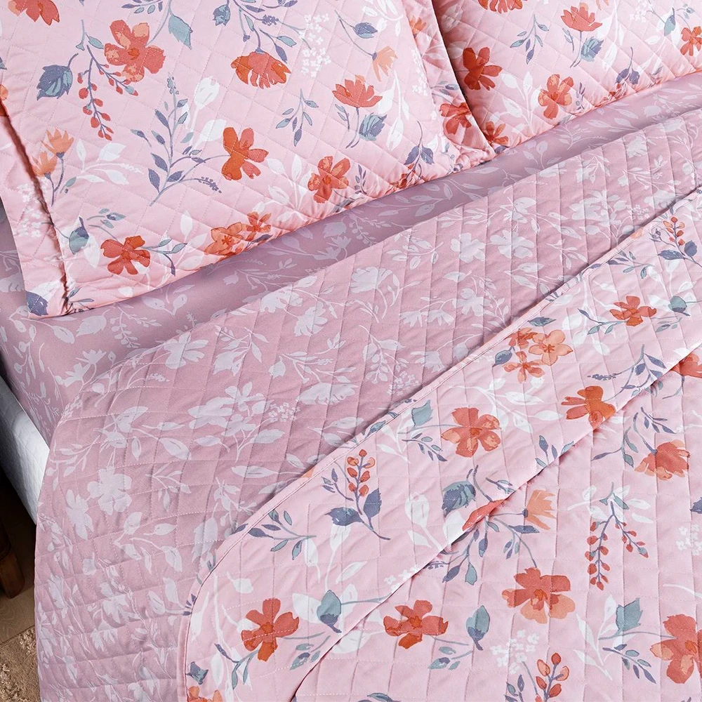 Produzido em micropercal 400 fios 100% poliéster, o cobre-leito oferece textura acetinada, durabilidade e fácil manutenção. Suas quatro estampas exclusivas — Lolli, Adria, York e Flora — traduzem diferentes estilos de aconchego: do floral delicado ao geométrico equilibrado, todos pensados para criar um ambiente acolhedor e cheio de personalidade.