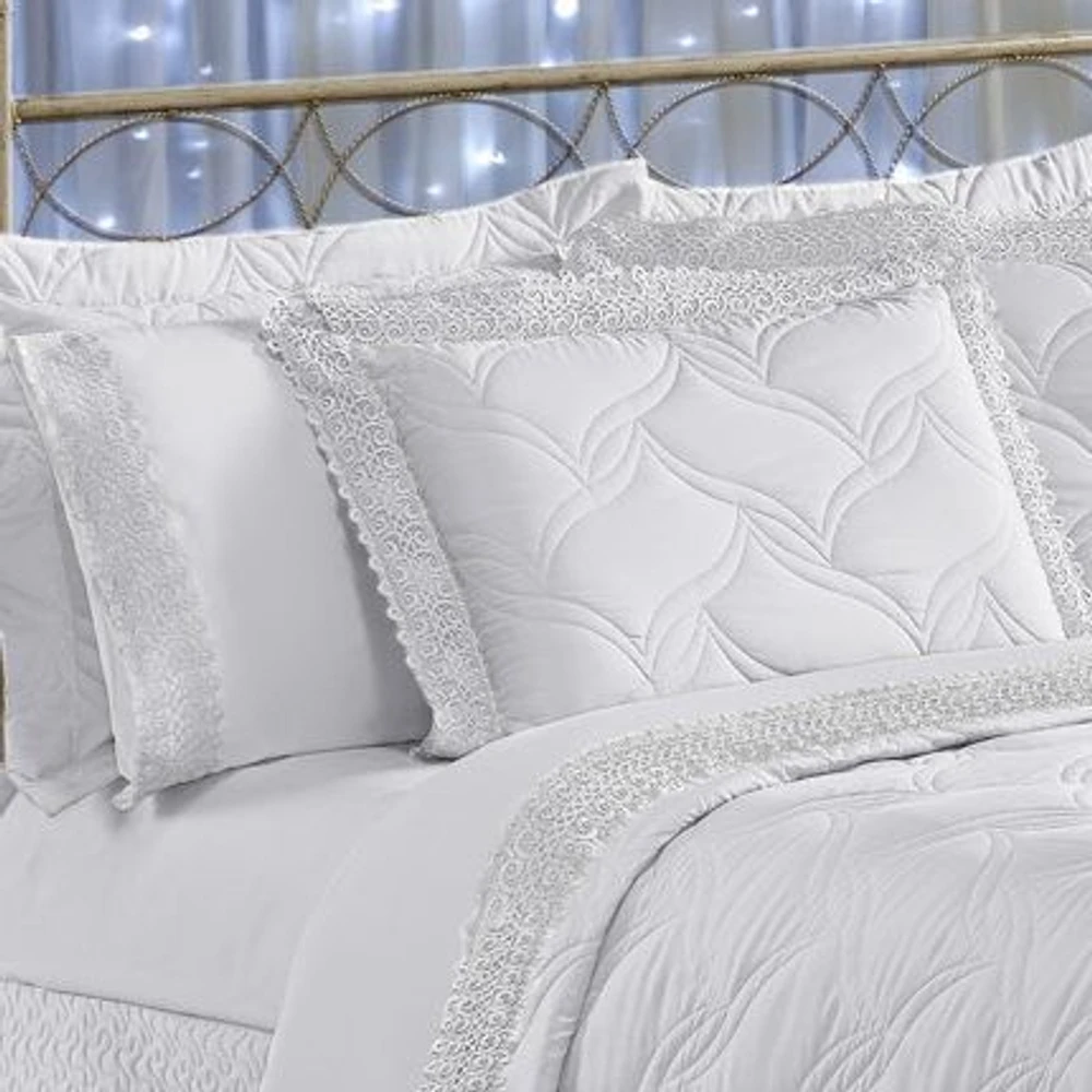 Cobre Leito Queen Matelassê e Guipir Royalle 5 Peças - Branco