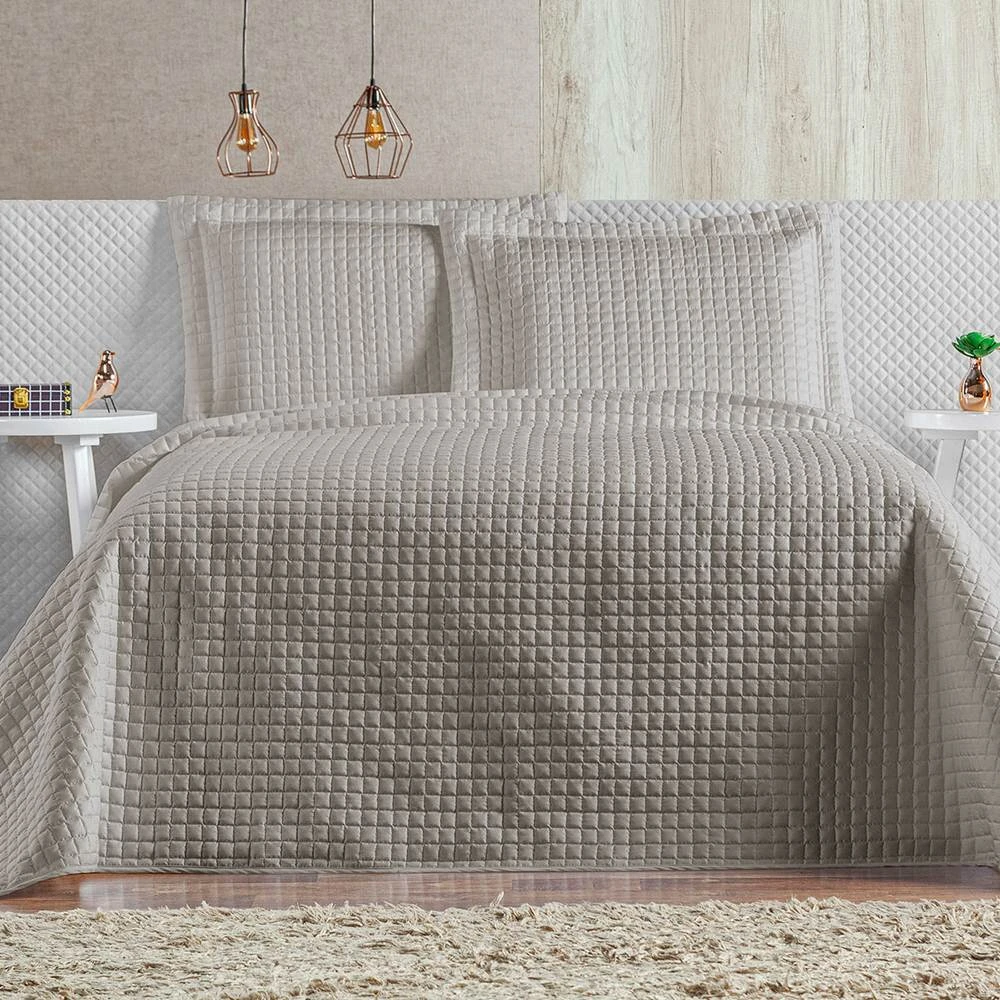 Versatilidade e visual moderno são as principais características do cobre leito Plata. Desenvolvido pensando na praticidade na hora de arrumar a cama mas sem deixar de lado a qualidade e conforto que esse produto oferece. O conjunto é composto por um cobre leito dupla face (ambos os lados da mesma cor) e dois portas travesseiros em percal 200 fios super macio para te inspirar na hora de fazer sua composição de cama posta. Todas as peças são matelassadas em formato pastilhado.