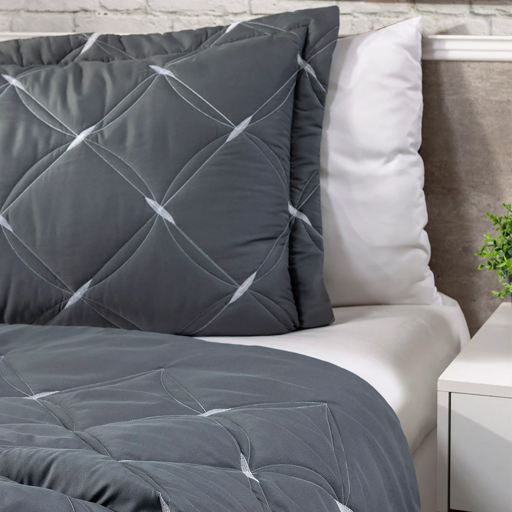 Cobre Leito Queen Unique 200 Fios Bordado 3 Peças - Grafite