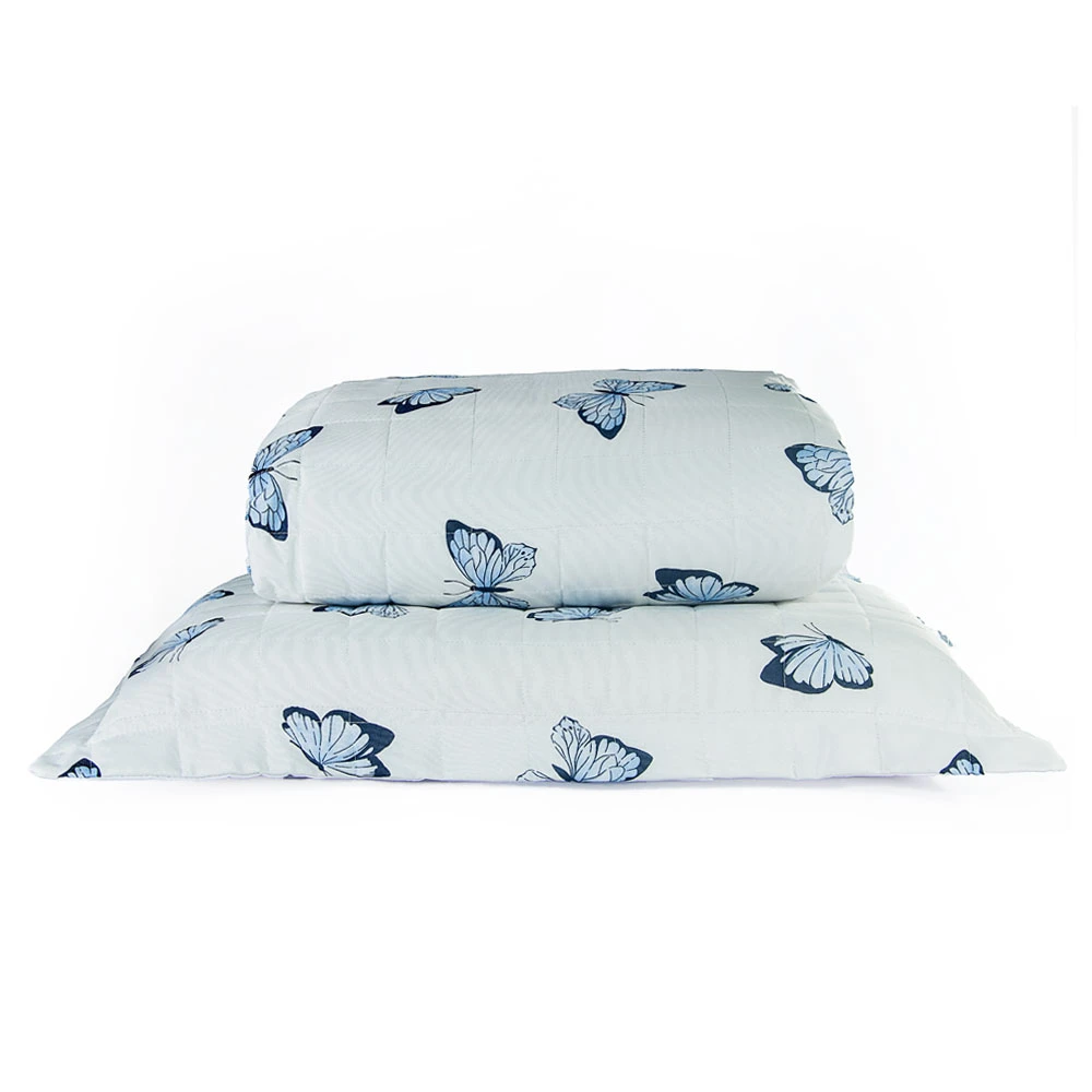 Cobre Leito Solteiro Essencialle Estampado 150 Fios 2 Peças - Borboletas Azuis