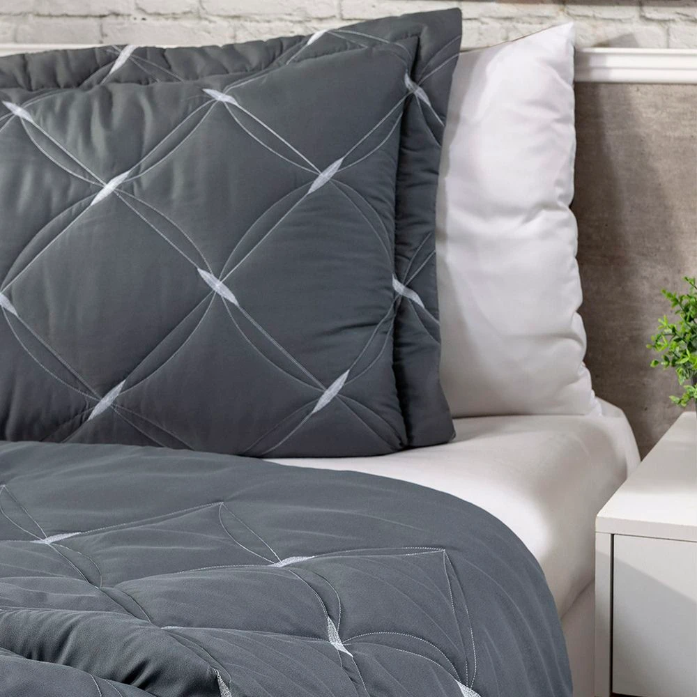 Uma cama com belo enxoval tem o poder de mudar todo o ambiente do quarto. O cobre leito Unique une a beleza dos bordados com uma paleta de cores modernas e atuais para formar uma cama posta acolhedora. O kit é composto por um cobre leito com bordado em linha e viés, e um porta travesseiro bordado com debrum (abas). O fechamento do porta travesseiro é modelo envelope, portanto, não possui zíper. Todos os itens são fabricados em tecido hipercal 200 fios 100% poliéster, tecido esse que garante maciez e qualidade ao produto sem ser necessário passar com ferro após a lavagem.