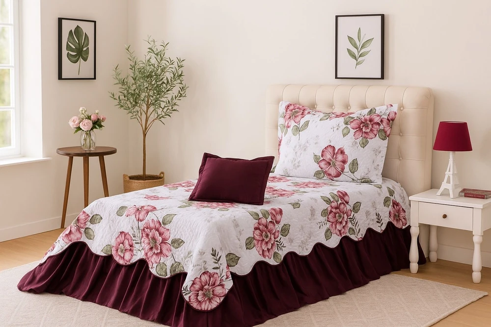 Os cobreleitos da Deccoralle são confeccionados pensando no seu bem-estar. Além de proporcionar uma sensação térmica agradável, eles são resistentes, duráveis e fáceis de lavar, facilitando a manutenção e conservação, além de transformar o seu quarto em um ambiente acolhedor e cheio de personalidade. Nossos produtos combinam qualidade, conforto e design exclusivo, garantindo noites de sono tranquilas e um visual sofisticado. Quantidade de Peças e Medidas Aproximadas (Largura x Altura):01 Cobreleito 2,30 m x 2,10 m01 Porta travesseiro 0,70 cm x 0,50 cm01 Capa de Almofada 0,40 cm x 0,40 cm Material e Composição:Superior: Microfibra estampada 100% poliésterManta: 100% poliésterInferior: 100% polipropileno Informações Específicas: Ótima qualidade e acabamentoIndicado para Cama SolteiroTecido MatelassadoCom Babado Informações Gerais:Enchimentos de travesseiros e almofadas não acompanham o produto Material visual ilustrativoPode haver alterações na tonalidade da cor da imagem do produto, devido a diferença de telas de visualizaçãoFique atento(a) à descrição do produto, podendo não apresentar todas as peças que constam n