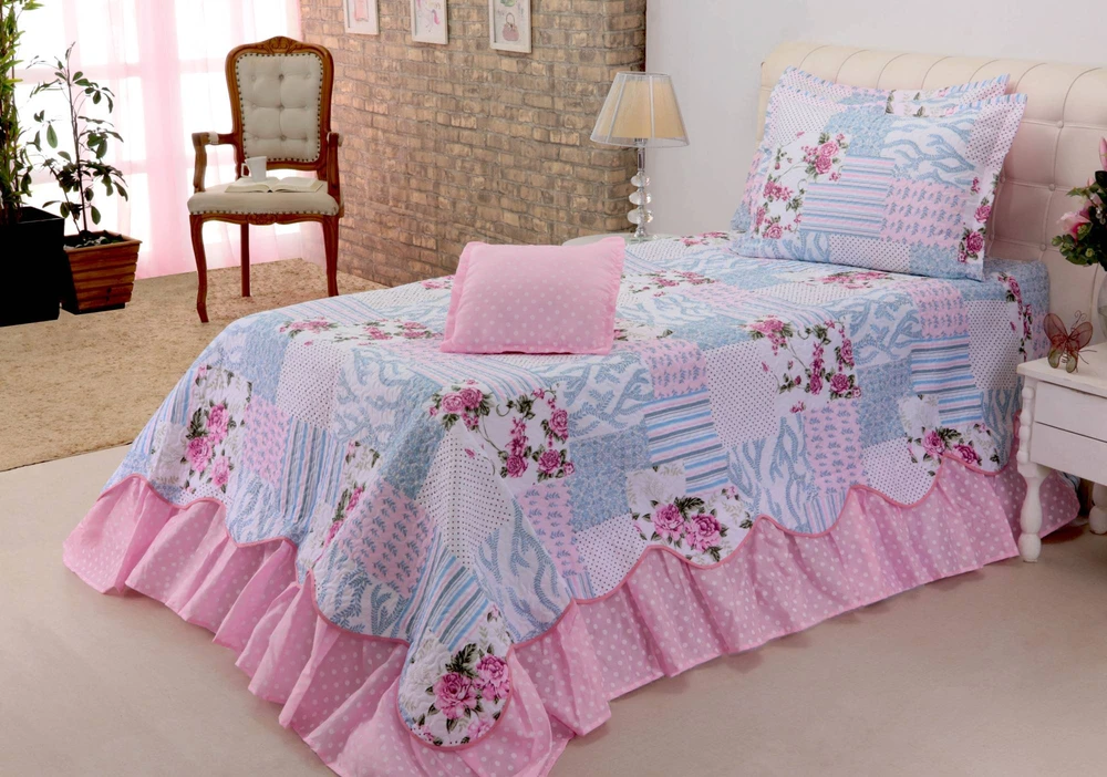 Os cobreleitos da Deccoralle são confeccionados pensando no seu bem-estar. Além de proporcionar uma sensação térmica agradável, eles são resistentes, duráveis e fáceis de lavar, facilitando a manutenção e conservação, além de transformar o seu quarto em um ambiente acolhedor e cheio de personalidade. Nossos produtos combinam qualidade, conforto e design exclusivo, garantindo noites de sono tranquilas e um visual sofisticado. Quantidade de Peças e Medidas Aproximadas (Largura x Altura):01 Cobreleito 2,30 m x 2,10 m01 Porta travesseiro 0,70 cm x 0,50 cm01 Capa de Almofada 0,40 cm x 0,40 cm Material e Composição:Superior: Microfibra estampada 100% poliésterManta: 100% poliésterInferior: 100% polipropileno Informações Específicas: Ótima qualidade e acabamentoIndicado para Cama SolteiroTecido MatelassadoCom Babado Informações Gerais:Enchimentos de travesseiros e almofadas não acompanham o produto Material visual ilustrativoPode haver alterações na tonalidade da cor da imagem do produto, devido a diferença de telas de visualizaçãoFique atento(a) à descrição do produto, podendo não apresentar todas as peças que constam n
