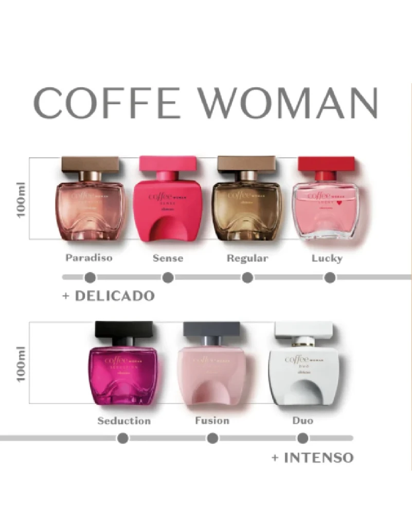 Coffee Woman Desodorante Colônia tem uma tecnologia exclusiva que traz o extrato do café Arábica, combinado com a doçura da Baunilha, resultando numa fragrância sensual e marcante.