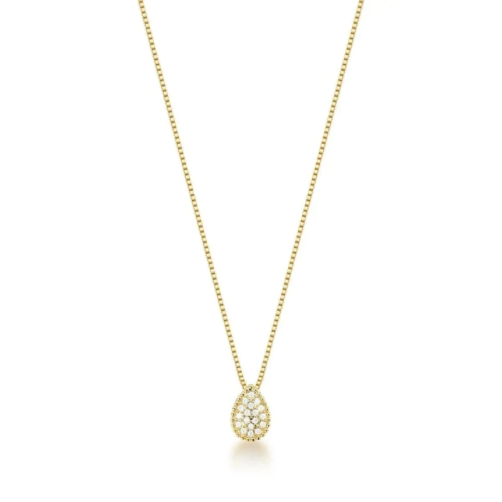 Descubra a elegância e o brilho incomparáveis do Colar com pingente gota cravejado com zircônica banhado a ouro Zarpellon. Perfeito para quem busca sofisticar o visual com delicadeza, este colar destaca-se pelo design exclusivo do pingente em formato de gota, meticulosamente cravejado com zircônias que refletem a luz em cada movimento.