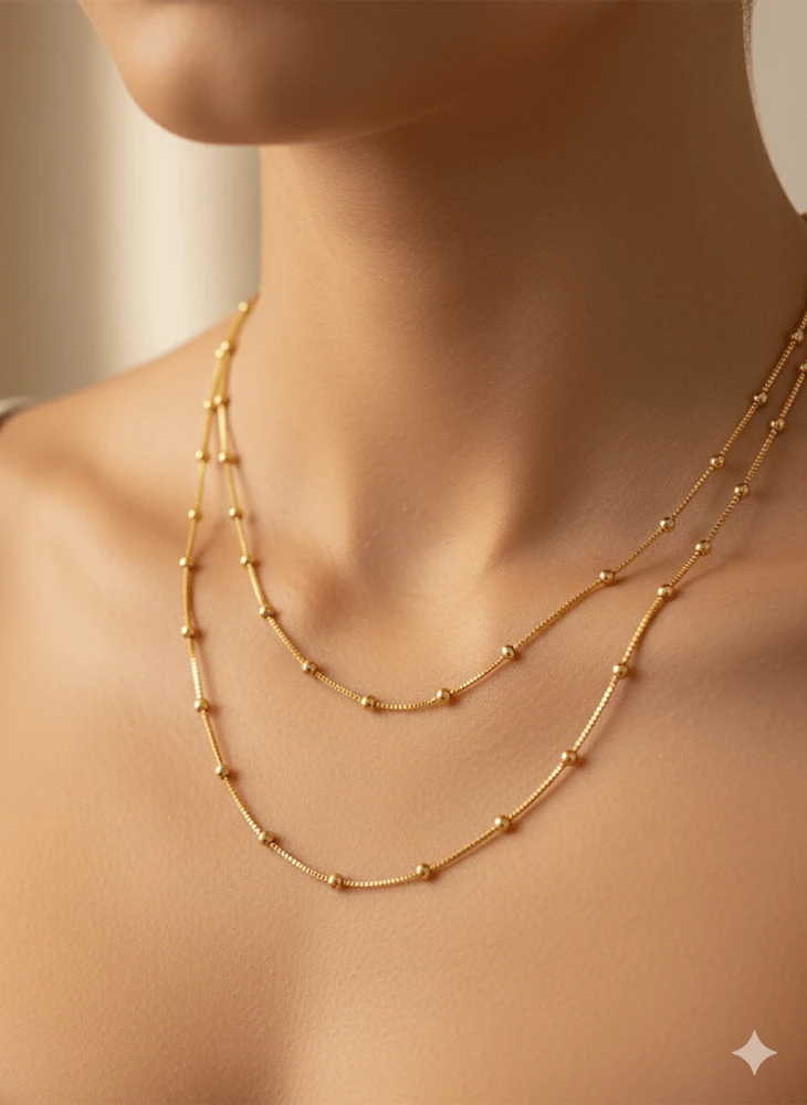 O Colar Aurora é a definição de delicadeza com sofisticação. Desenvolvido com corrente fina e pequenas esferas distribuídas ao longo do comprimento, ele traz um visual leve, elegante e extremamente versátil para diferentes propostas de look.