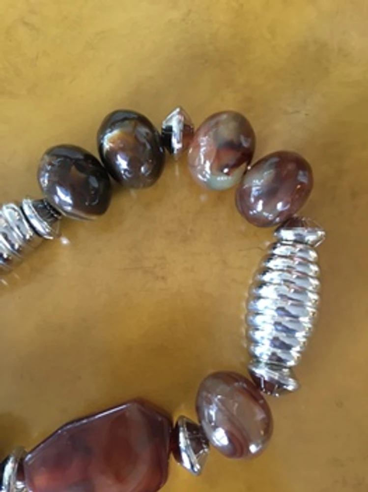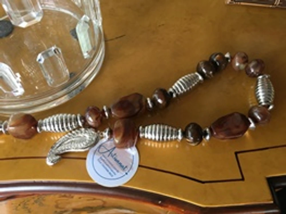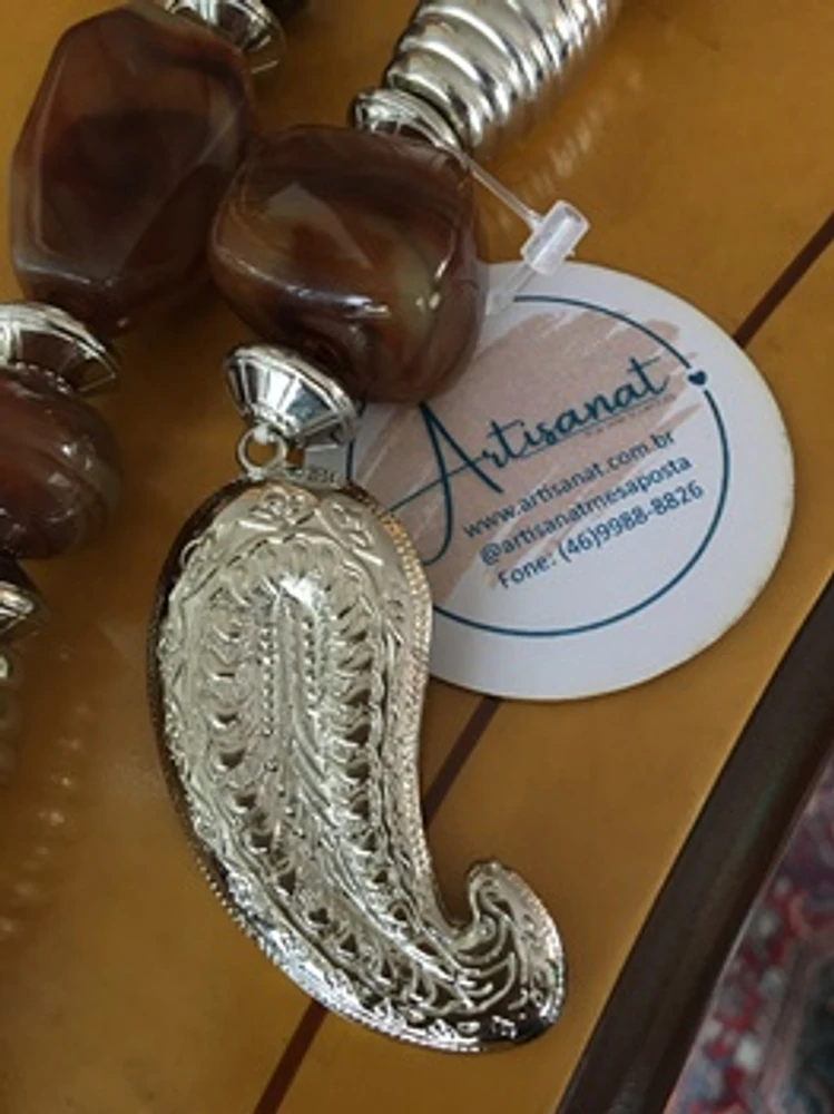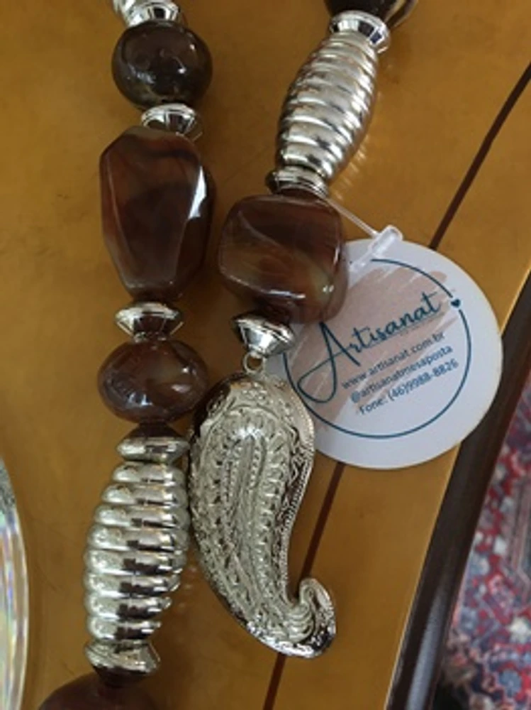 Colar de Mesa feito com resinas, acessórios, e tassel na cor café