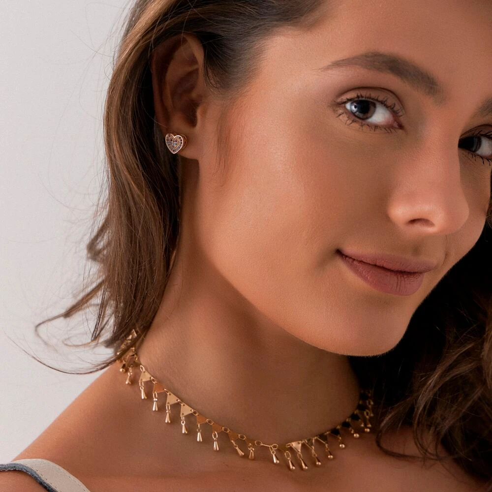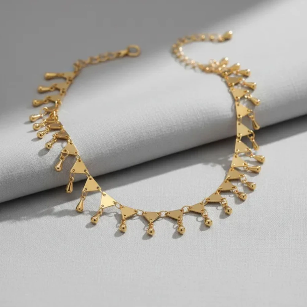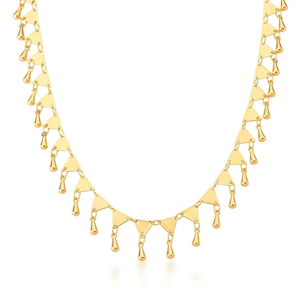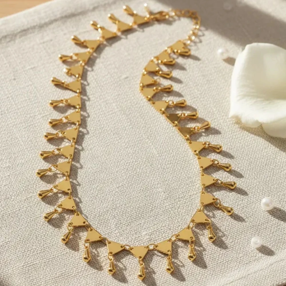 Choker com pingentes triangulares e gotas, lisos e dispersos.
