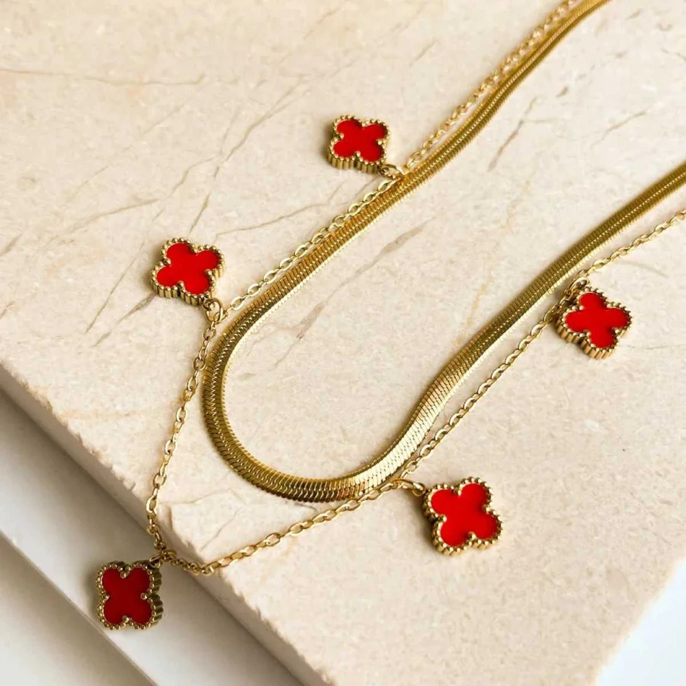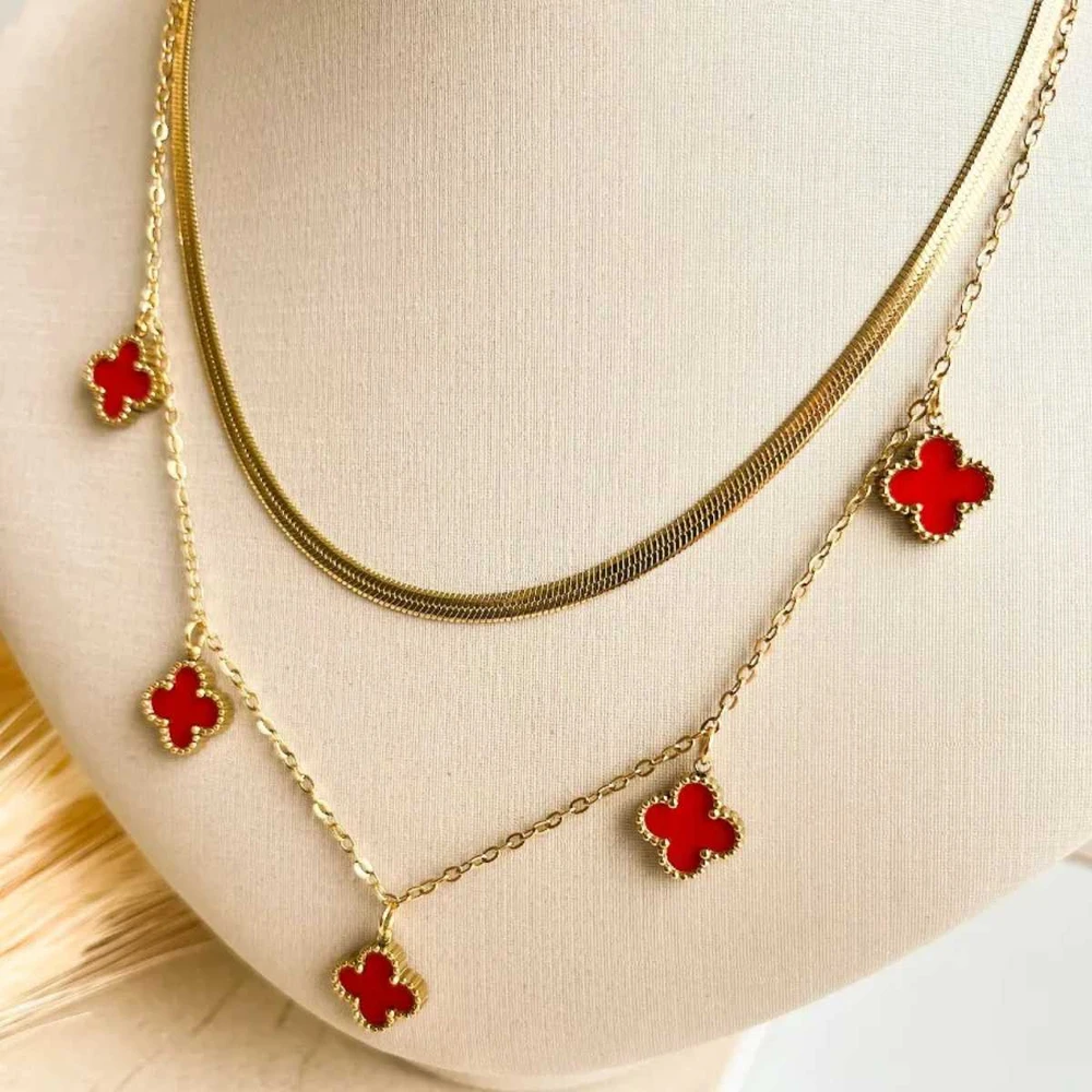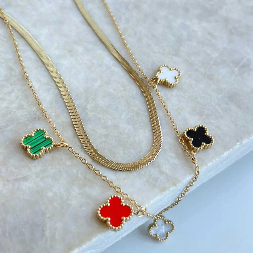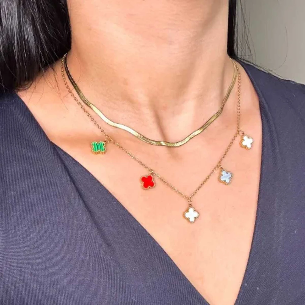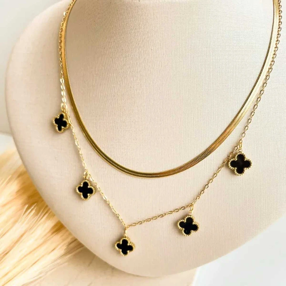 Colar Duplo 5 Trevos Dourado - Aço Inoxidável