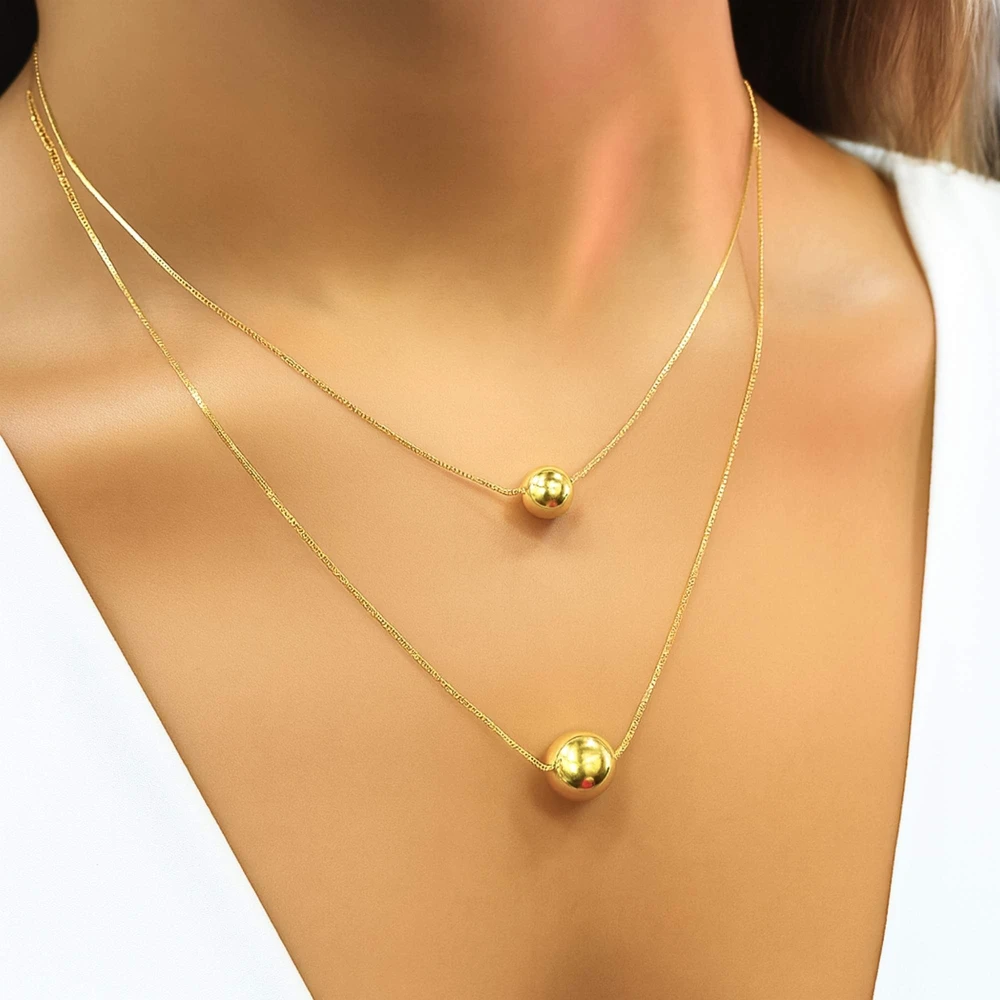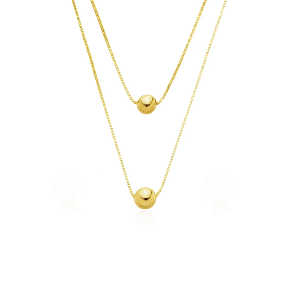 Colar Duplo Bolinha Lisa - Banhado em Ouro 18k